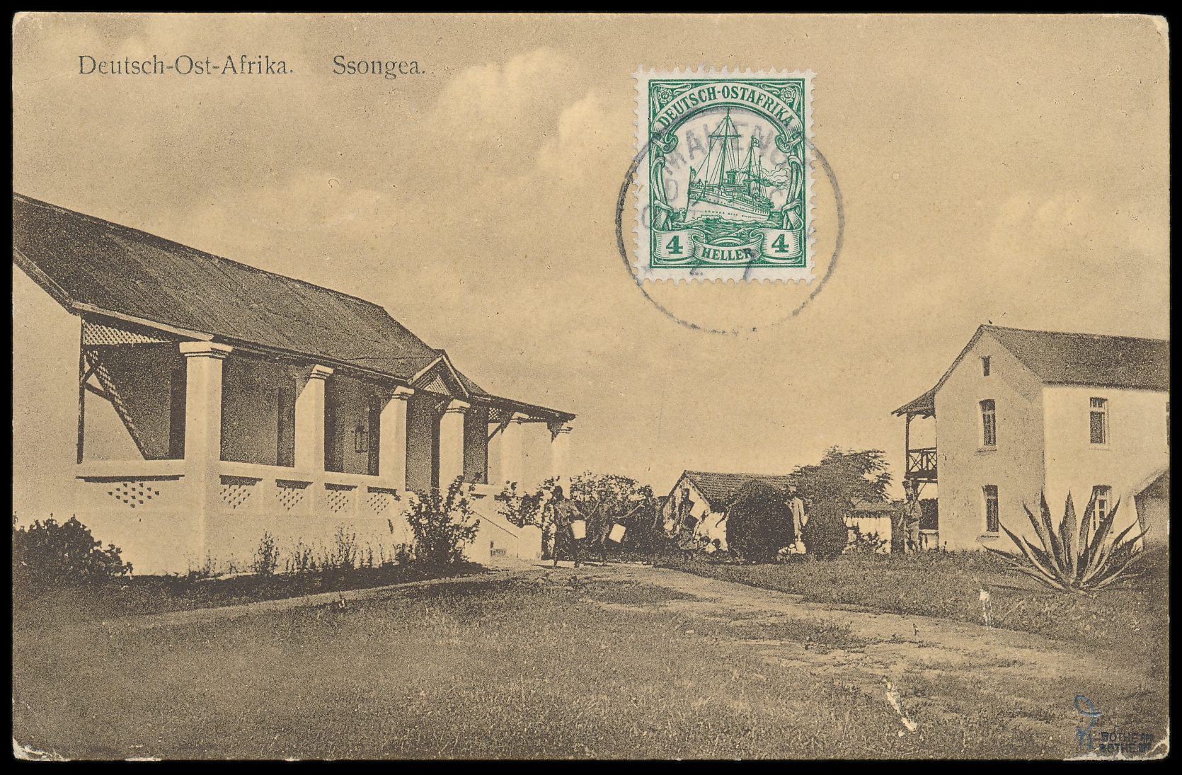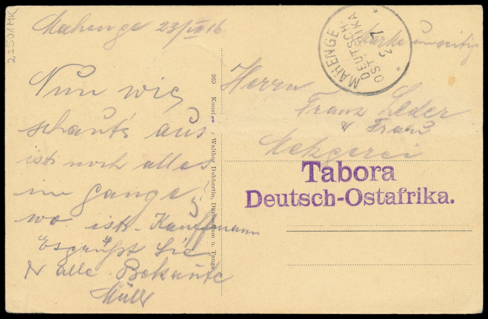 Stempel Mahenge 23.7.16 (Berliner Jahreszahl nicht abgeschlagen) vorder- und rückseitig auf mit 4 H. bildseitig frankierter Ansichtskarte Songea nach Tabora, Bedarf, doppelt signiert Bothe BPP