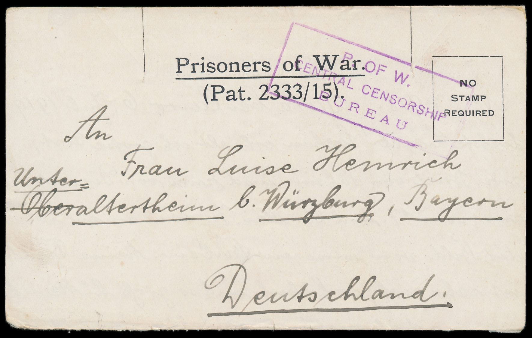 Stichwörter: Indien, Kriegsgefangenenpost, Zensurpost
