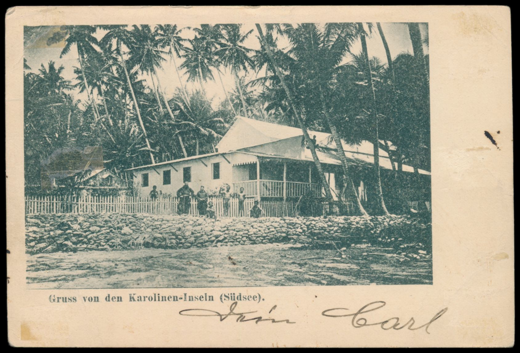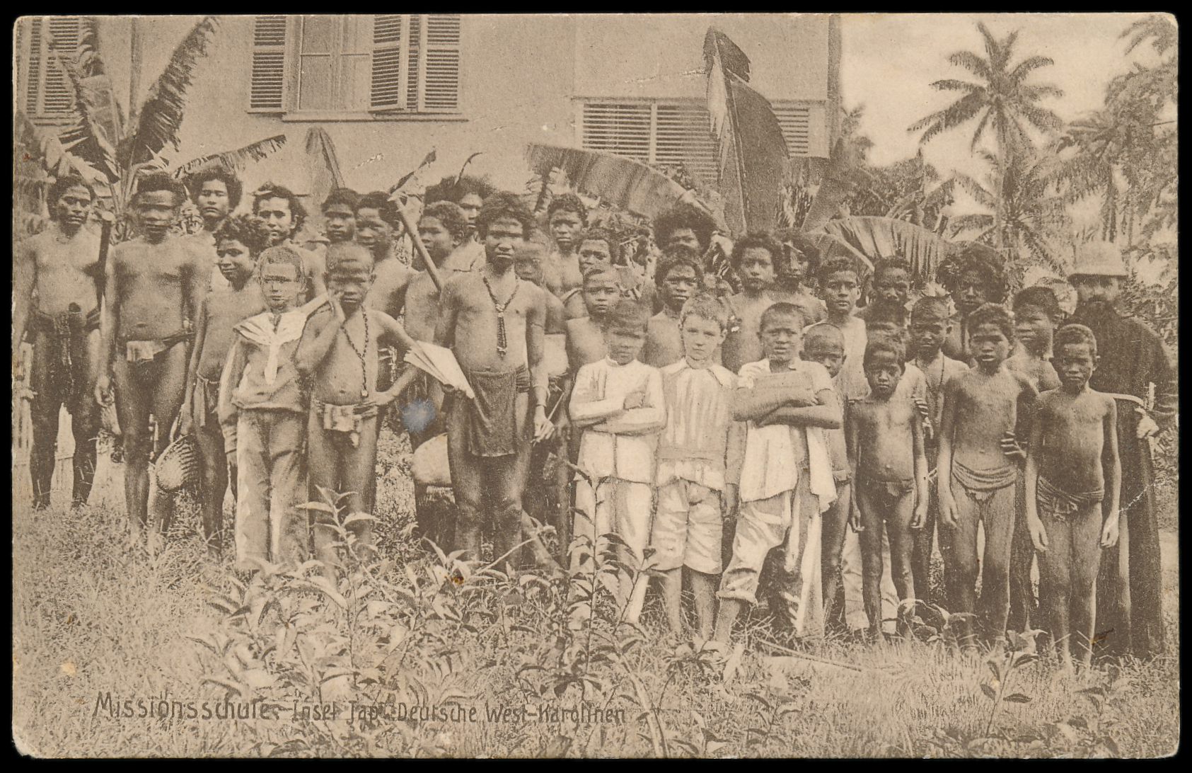 Ansichtskarte Missionsschule, Insel Jap, ungebraucht, ca. 1909