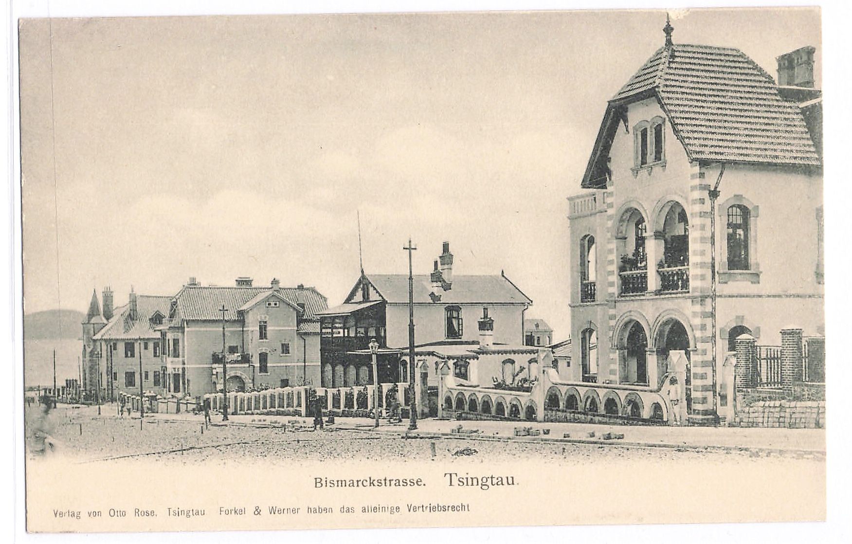 Ansichtskarte Tsingtau - Bismarckstrasse, Verlag von Otto Rose, Tsingtau, ungebraucht, ca. 1902