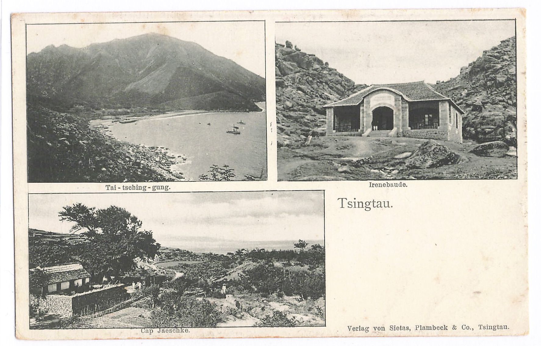 Dreibild-Ansichtskarte Tsingtau: "Tai-tsching-gung / Irenebaude / Cap Jaeschke" , Verlag von Sietas, Plambeck & Co., Tsingtau, ungebraucht, ca. 1905