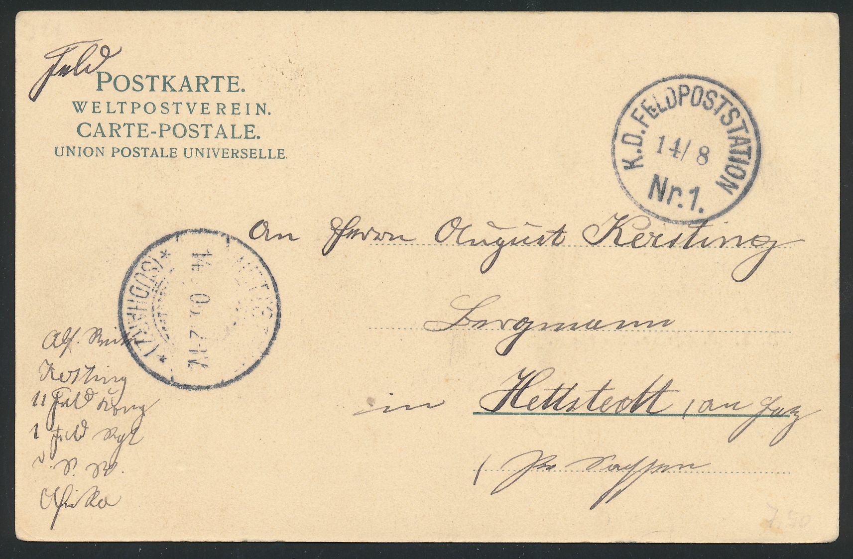Stichwörter: Feldpost bis 1920, Rotes Kreuz