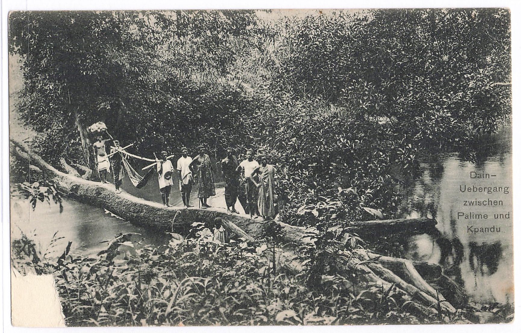 Ansichtskarte Dain-Übergang zwischen Palime und Kpandu, Verlag der Kathol. Mission in Lome, Frankatur 5 Pf. (gering fleckig), Gitterstempel Lome 13.5.09, nach Schwerin, Bedarf