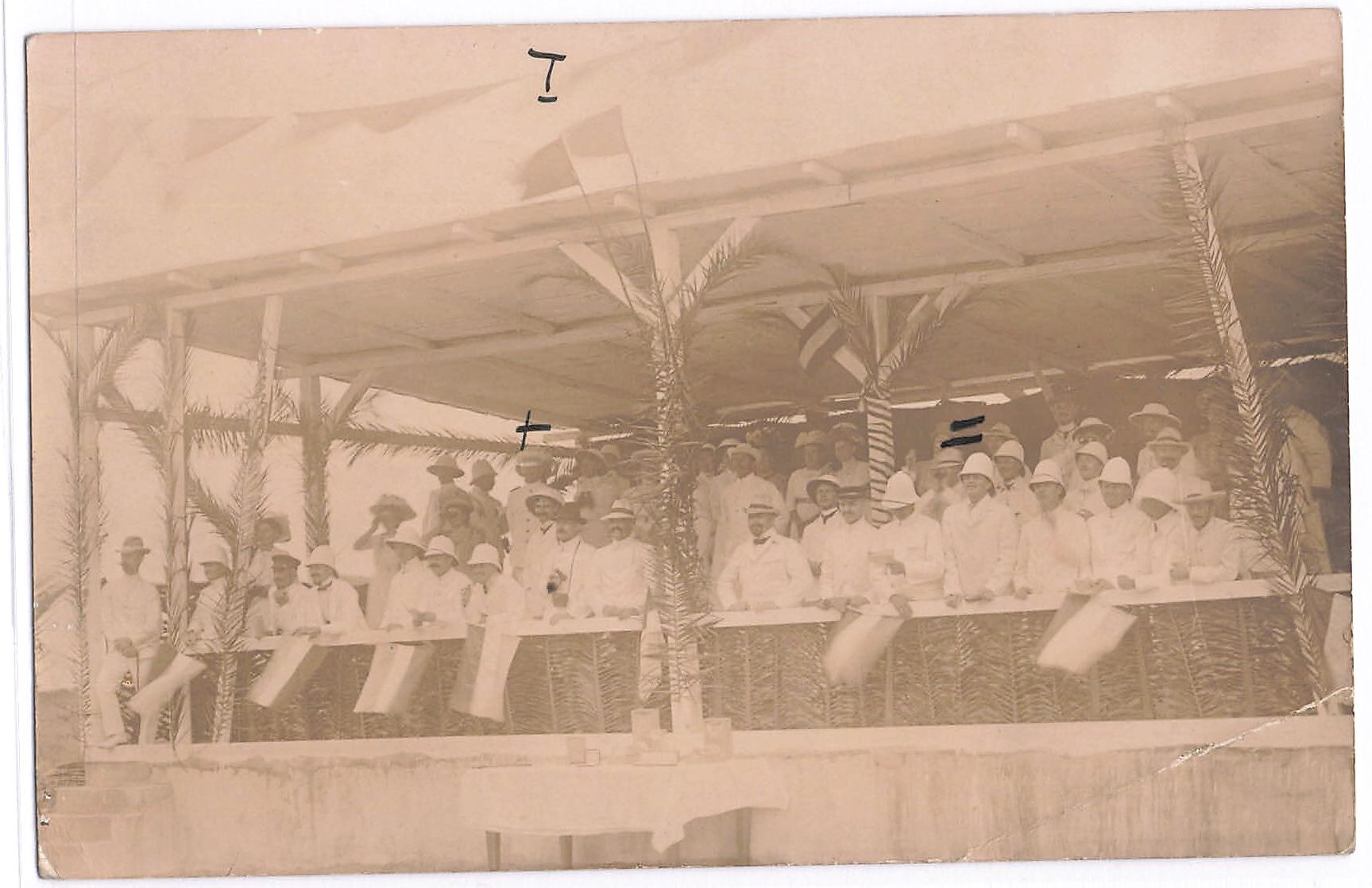 Foto-Ansichtskarte, seltene Privataufnahme, rückseitig beschriftet "4. Juli, Tribüne auf dem Rennplatz ...", ungelaufen, ca. 1909, rechts unten kleiner Eckbug