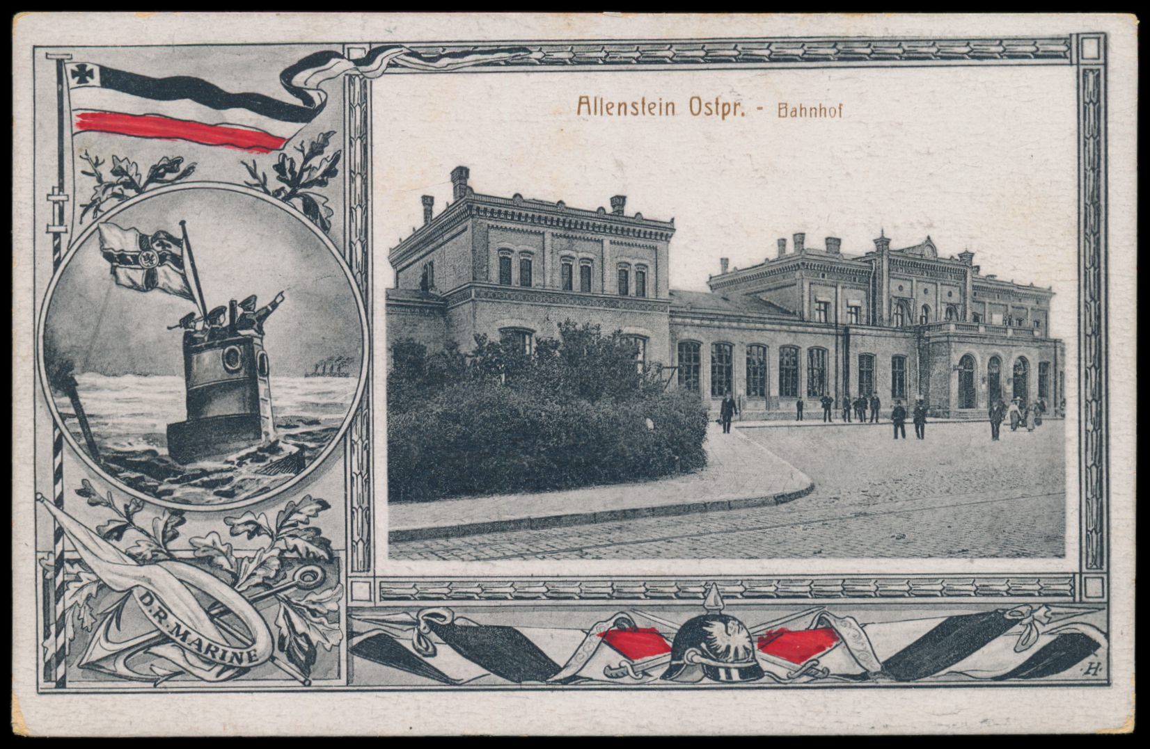 Patriotik-Ansichtskarte Allenstein - Bahnhof als Feldpostkarte nach Elberfeld, Stempel Allenstein 2 17.1.16, Bedarf