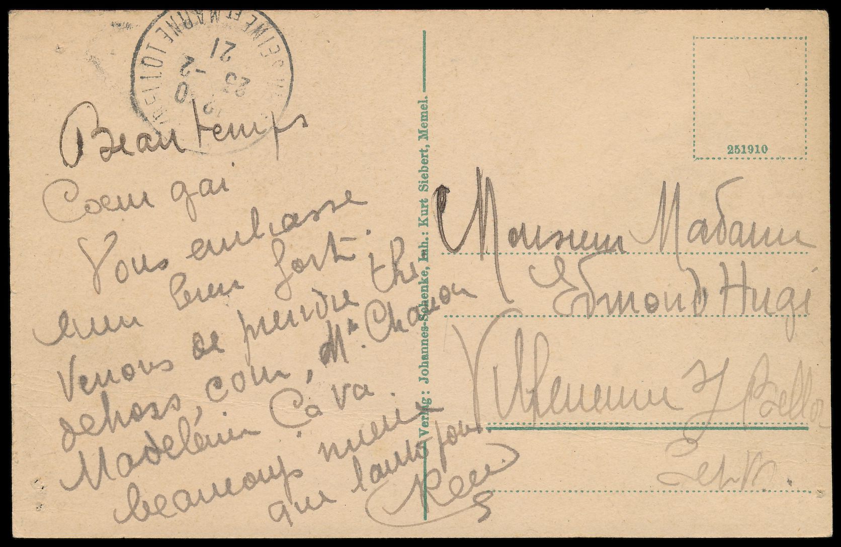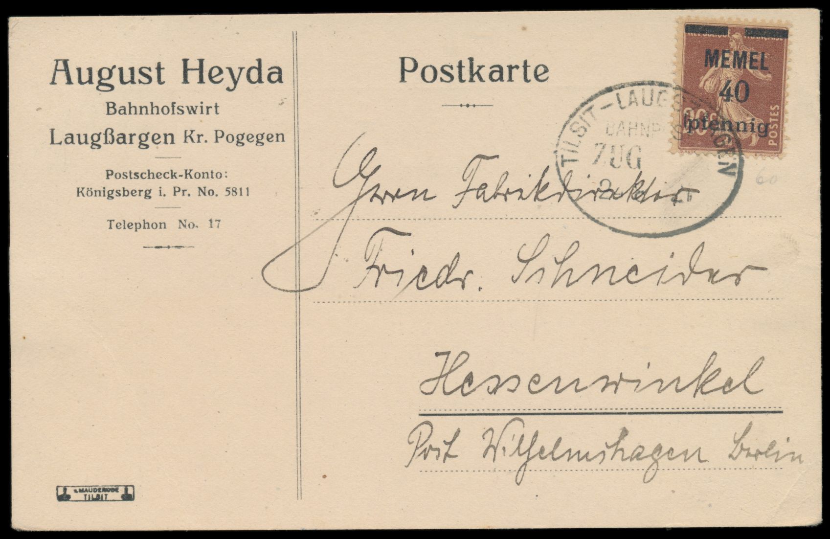 Stichwörter: Eisenbahnwesen, Feldpost bis 1920, Memel
