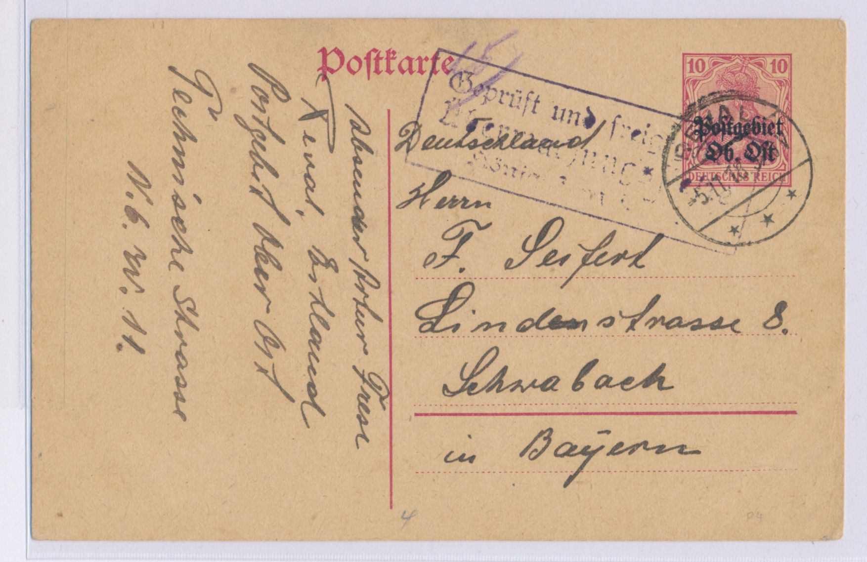 Stempel Reval 5.11.18 auf Ganzsache 10 Pf. nach Schwabach, späte Verwendung in der kurzen Portoperiode ab 1.10.1918, Zensur-R3 Königsberg, Bedarf