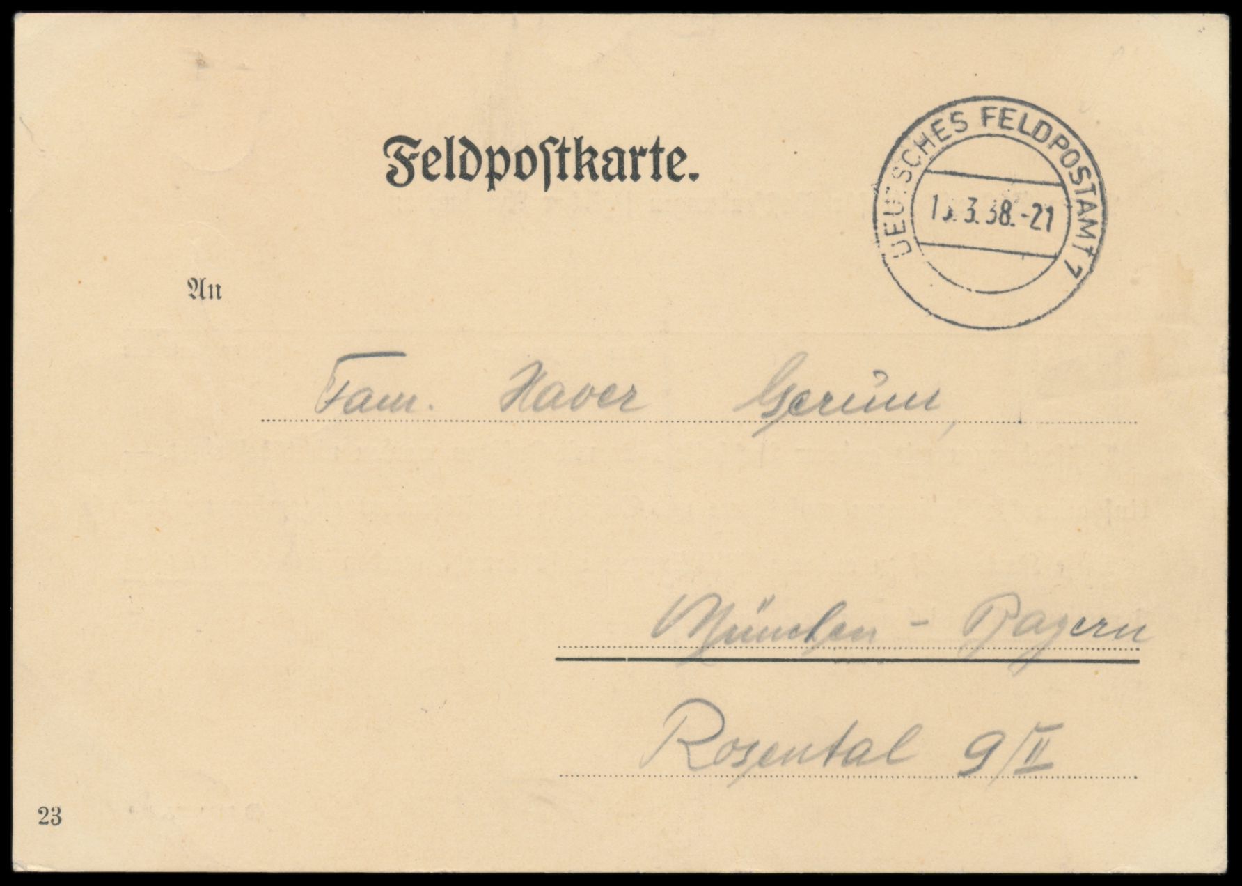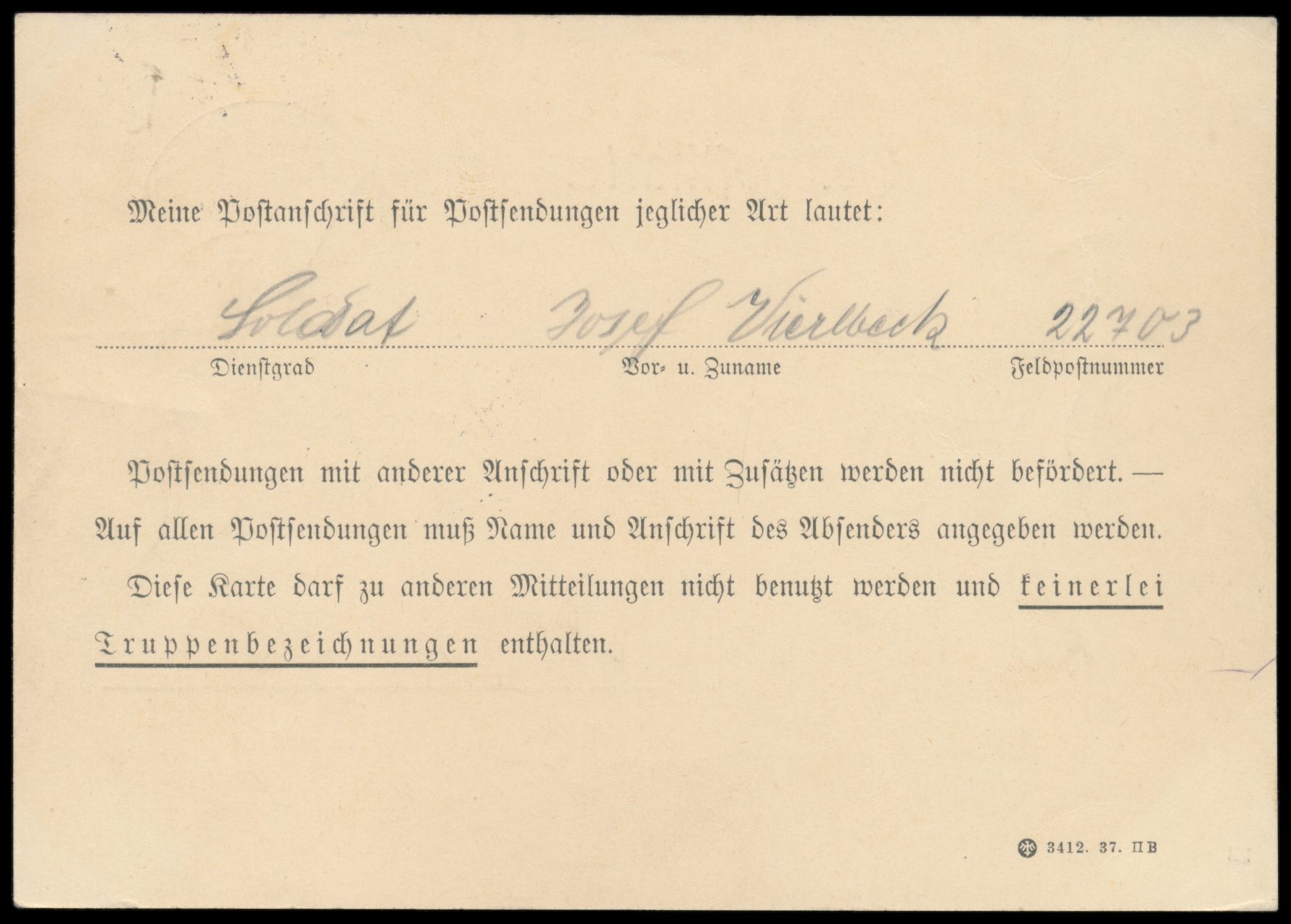 Österreich 1938, Stempel Deutsches Feldpostamt 7 16.3.38 auf Benachrichtigungskarte über Zuteilung der Feldpostnummer 22703 nach München, Bedarf