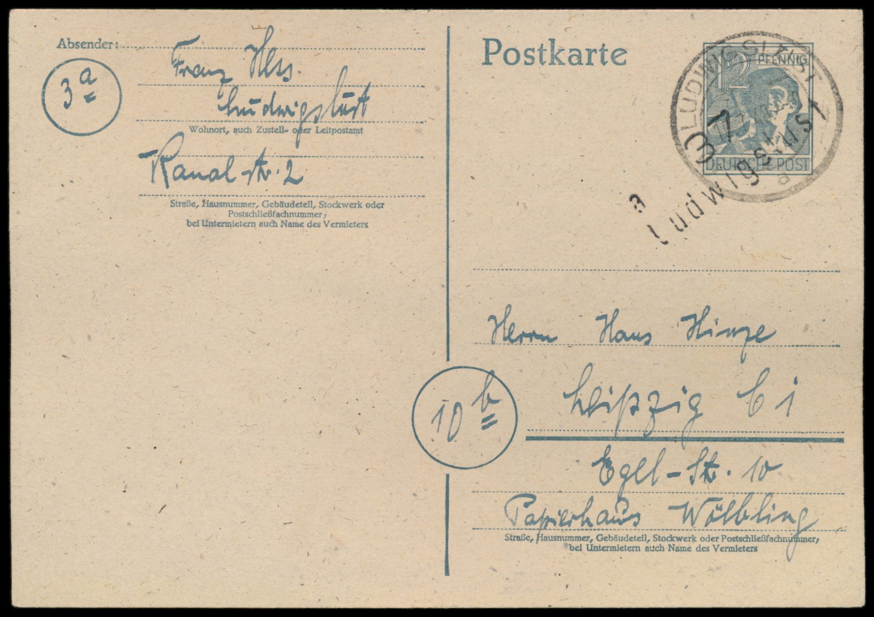 Bezirkshandstempel a 37 Ludwigslust auf Ganzsache 12 Pf., Stempel Ludwigslust 10.7.48, Letzttag, nach Leipzig, Bedarf