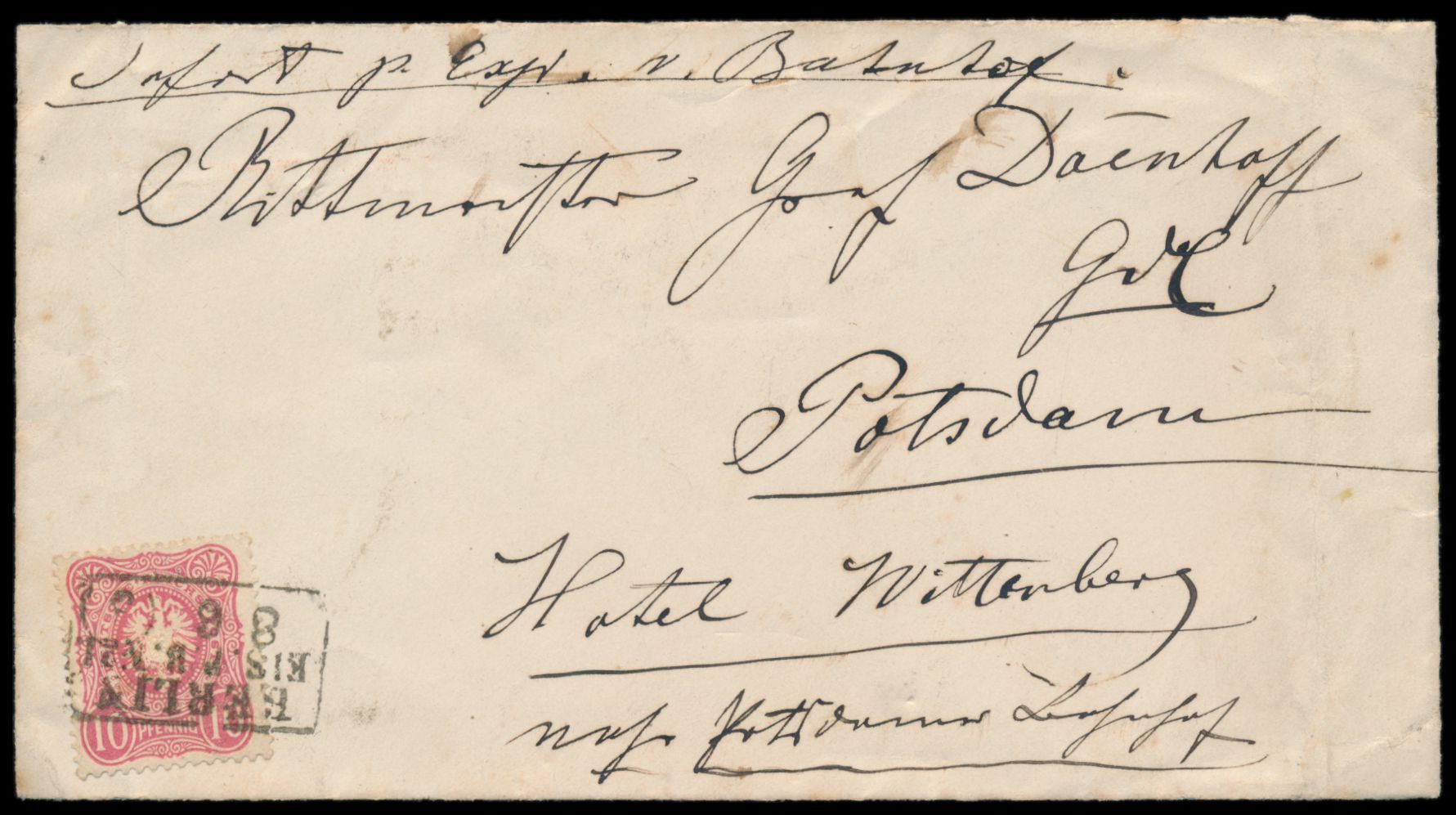 seltener R3 Berlin Eis. P. B. No. I. 8.6. auf Brief mit 10 Pf. nach Potsdam, Ankunftstempel 8.6.80