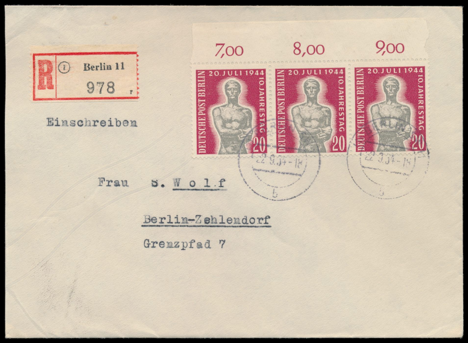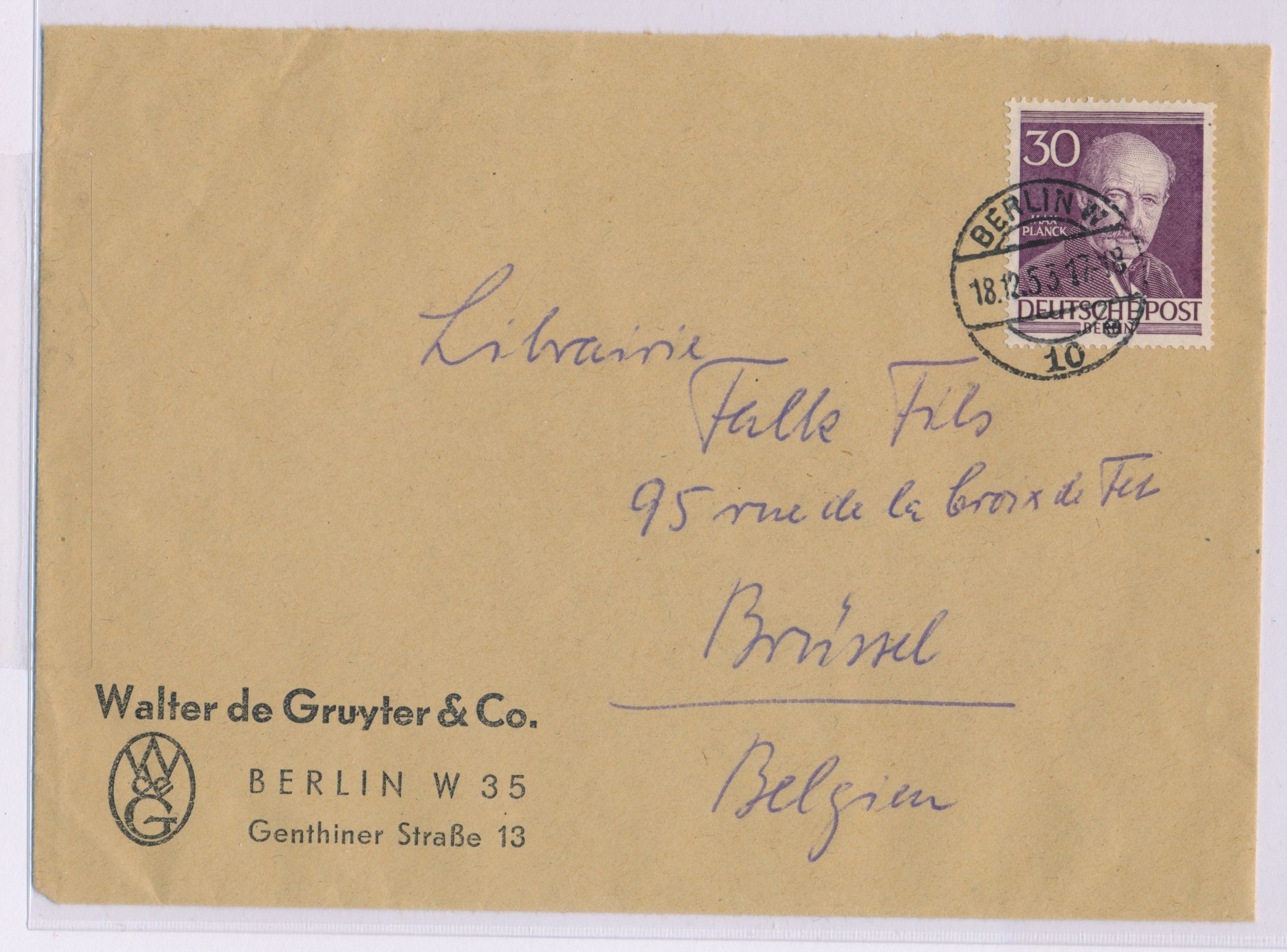Einzelfrankatur 3 0 Pf. "Männer der Geschichte Berlins" auf Auslandsbrief nach Brüssel, Stempel Berlin W 10 18.12.53, portorichtig, Bedarf