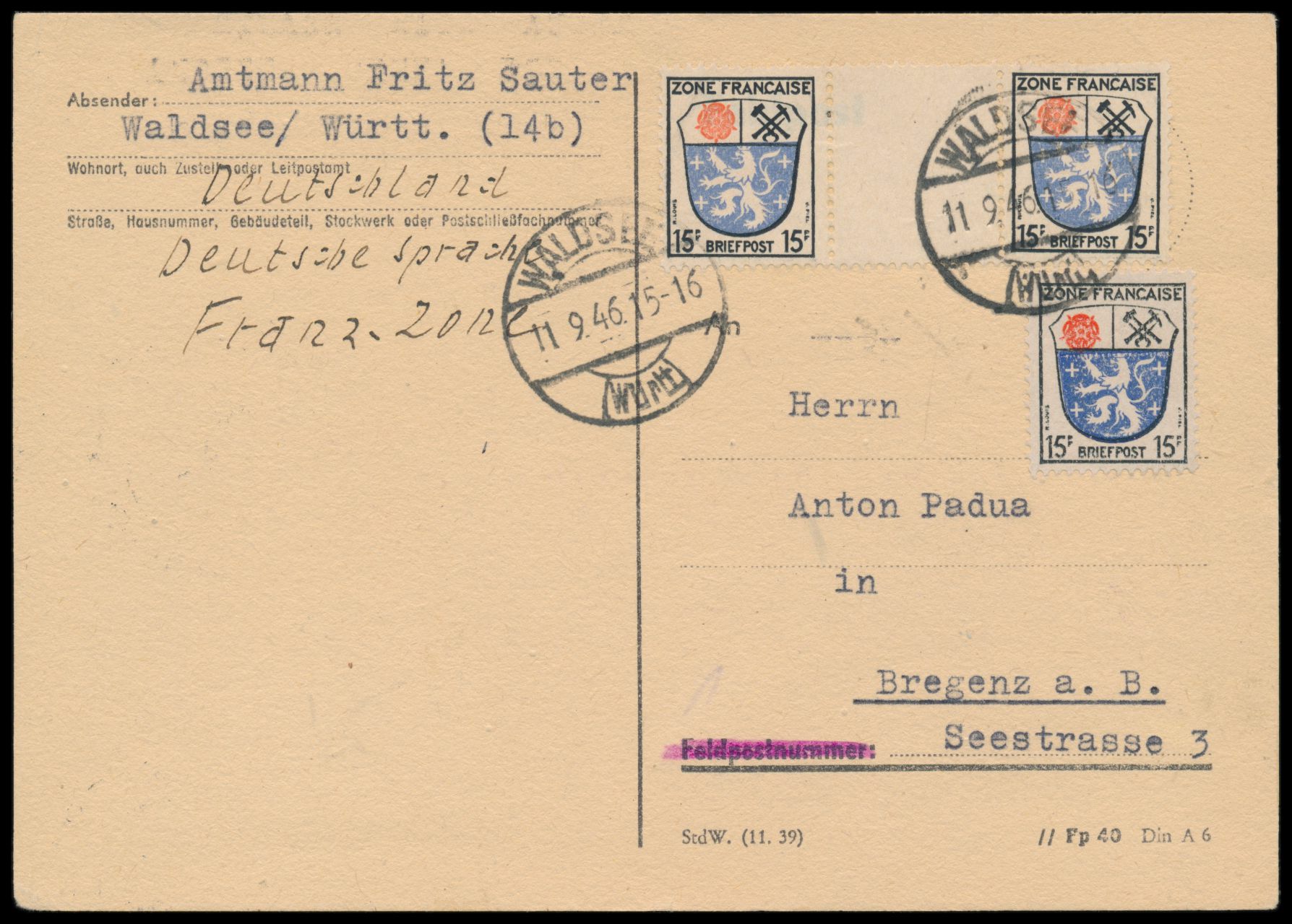 Stichwörter: Gebühr bezahlt ab 1945, Saar