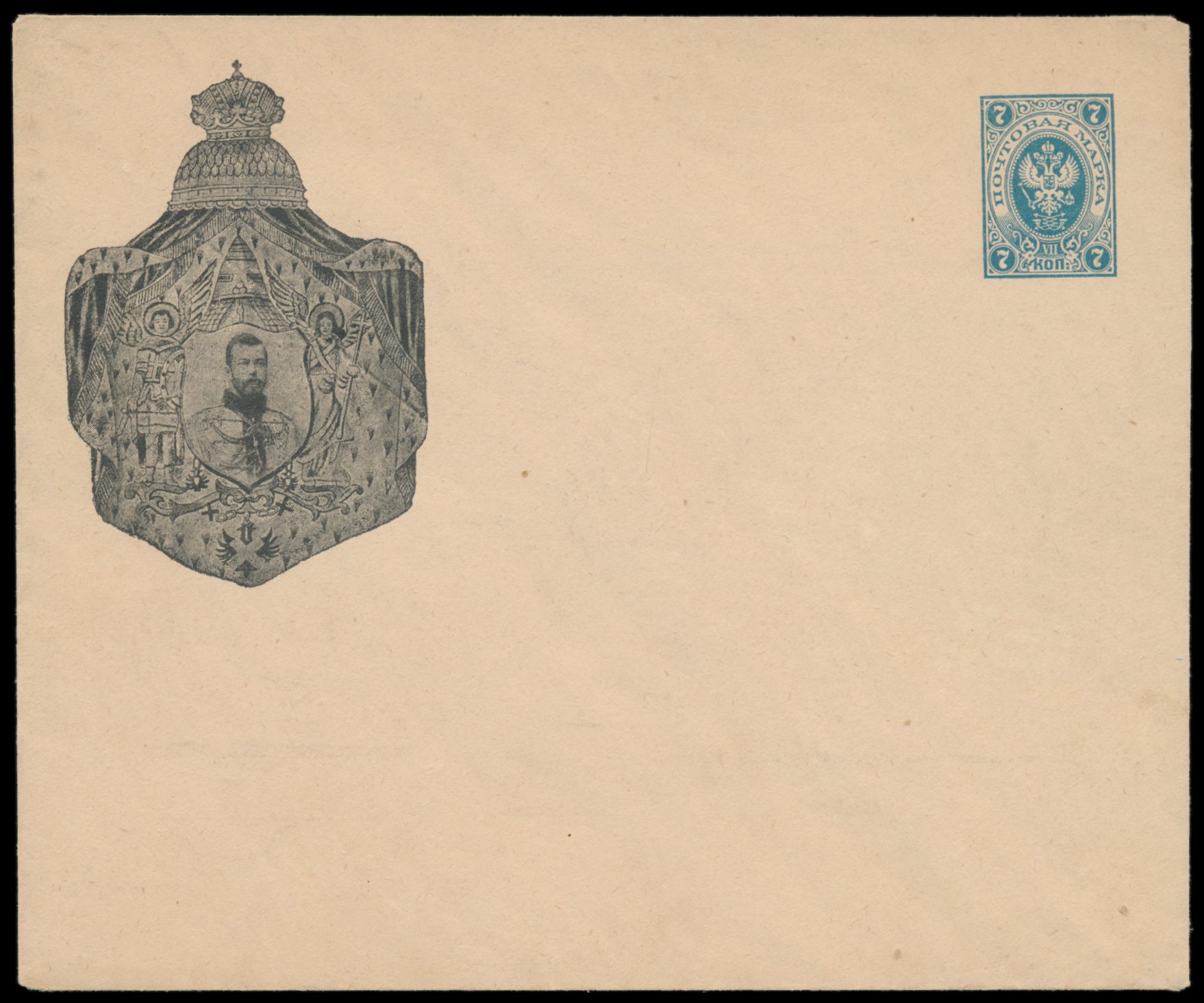 Ganzsachenumschlag 7 Kop. (1889) mit vorderseitigem Bildzudruck Zar Nicolaus II., ungebraucht