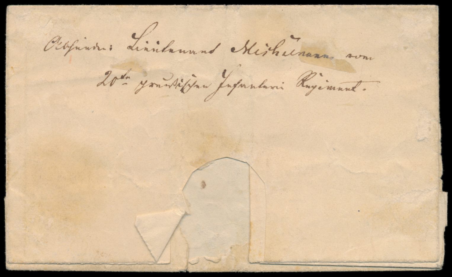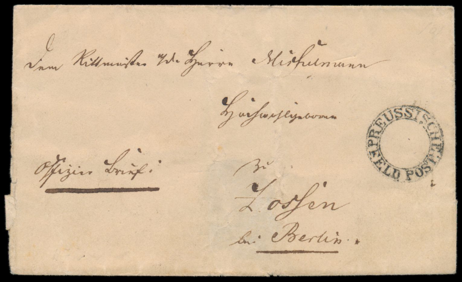 Feldpost-Faltbrief 1848 aus dem Dänischen Krieg, sauberer K2 Preussische Feldpost, handschriftlich Offiziersbrief, Absender Leutnant im 20. preussischen Infanterie Regiment, nach Zossen, schwacher Mittelbug, ohne Inhalt