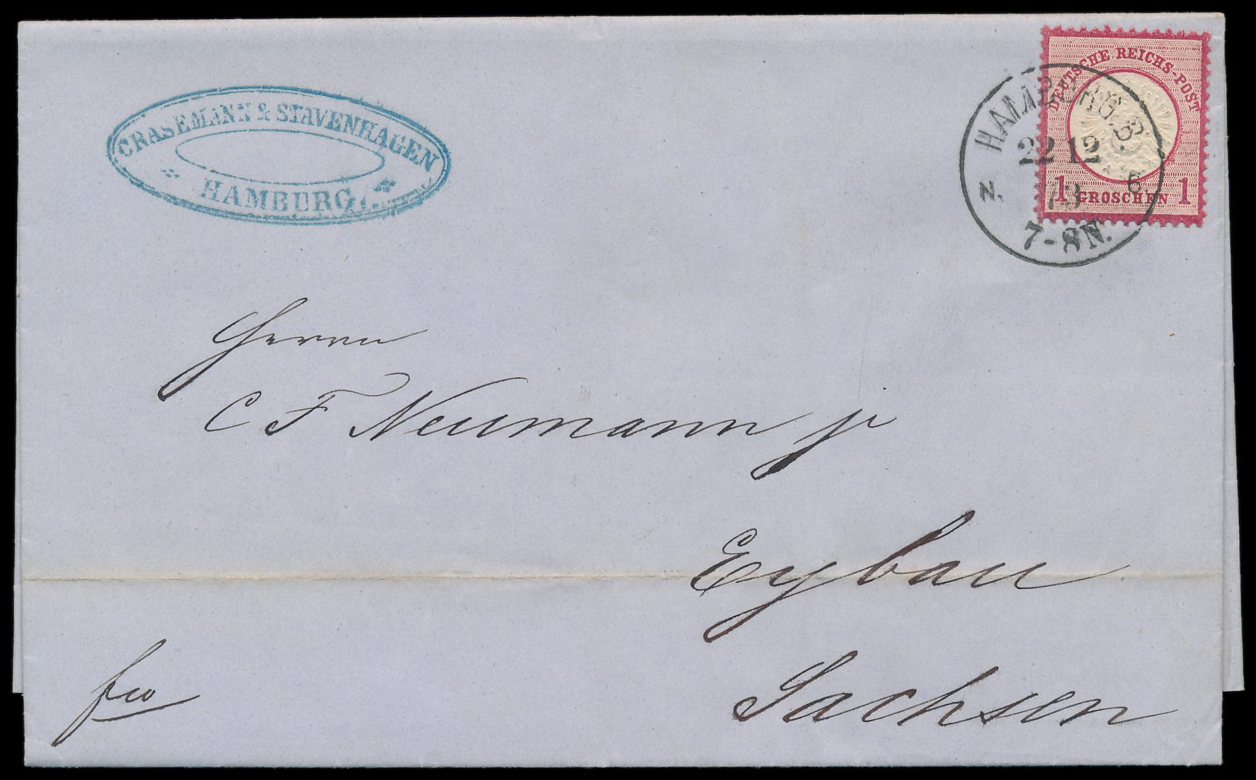 1 Gr auf Faltbrief nach Eybau, seltener Stempel Hamburg B. / N. 6. 22.12.73, nur vom 31.8. bis 31.12.1873 belegt, spätes Datum, mit komplettem Inhalt
