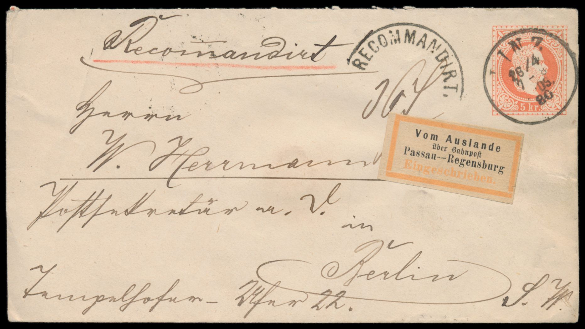 Stichwörter: Bahnpost, Einschreibbriefe, Österreich