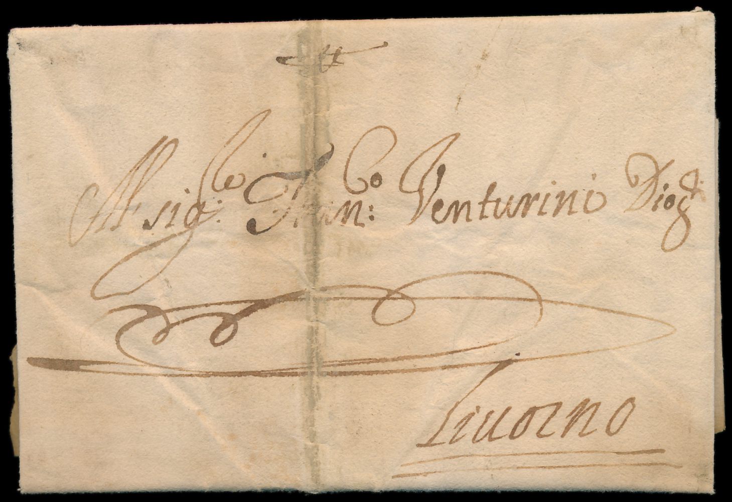 Libyen, Faltbrief mit komplettem Inhalt in italienischer Sprache, geschrieben "11 Marzo 1675 Tripoli di Barberia" von Donisio Rossi, an Venturini in Livorno, interessanter geschichtlicher Inhalt bezüglich des Krieges von Großbritannien gegen die Barbareskenstaaten, Alterungsspuren und kräftiger senkrechter Bug, seltenes Dokument