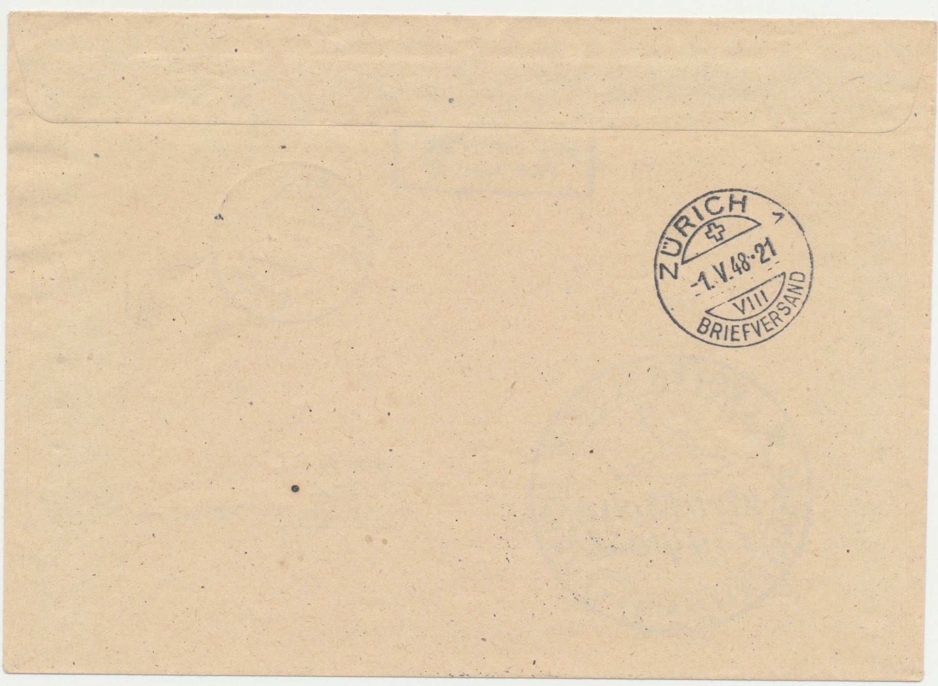 Erstflug Frankfurt (Main) - Zürich 1.5.1948: Einzelfrankatur 1 M. Taube auf Luftpostbrief nach Zürich, Stempel Frankfurt (Main) 2 1.5.48, Erstflug-Bestätigungsstempel und Ankunftstempel Zürich 1 Briefversand 1.5.48, 199 Belege befördert