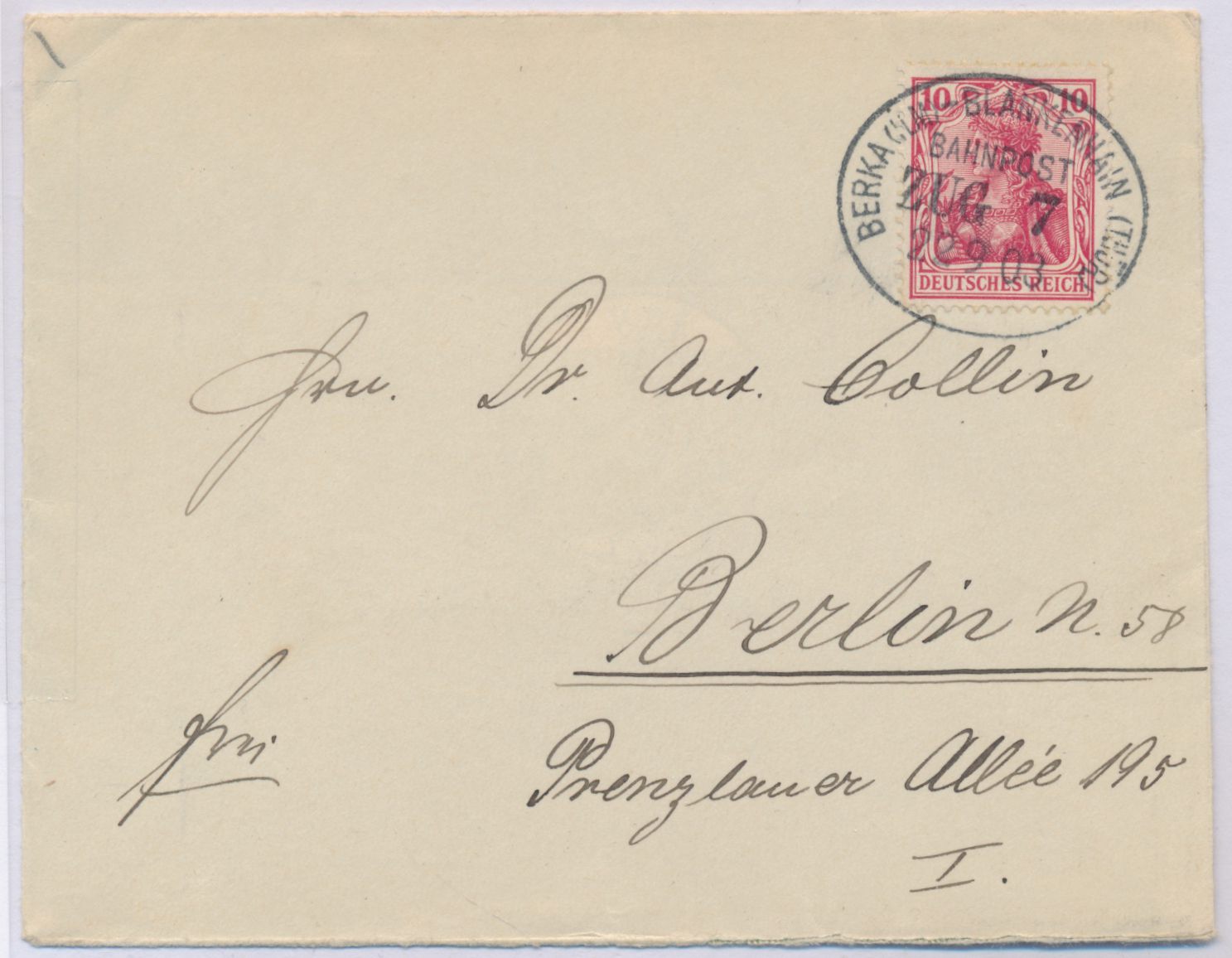 Berka (Ilm) - Blankenhain (Thür.) Zug 7 22.9.03, Stumpfovalstempel auf Brief nach Berlin, Ankunftstempel 23.9.03, Zweigbahn, Streckenlänge 6 Km.