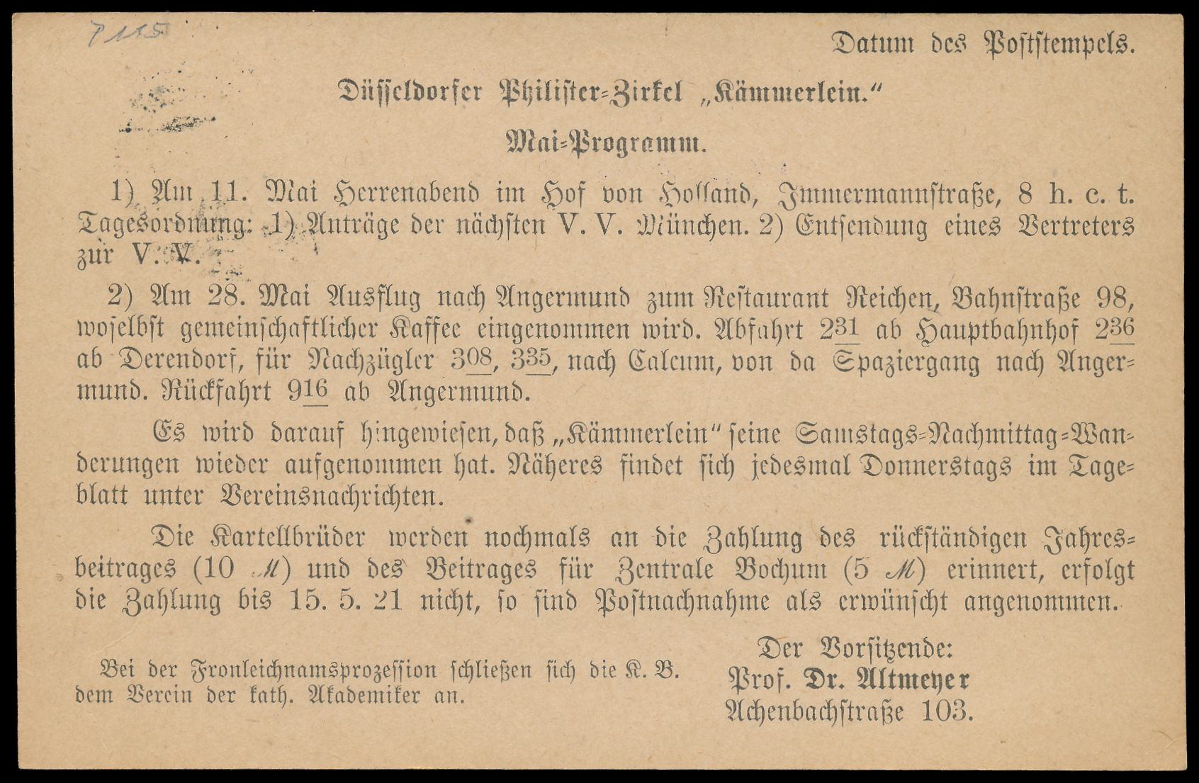 Ganzsache 10 Pf. mit Schreibmaschinen-Beschriftung und Vermerk Drucksache, Stempel Kronshagen 17.6.20, nach Oelde, L1 Zurück und L2 "Als Drucksache unzulässig."