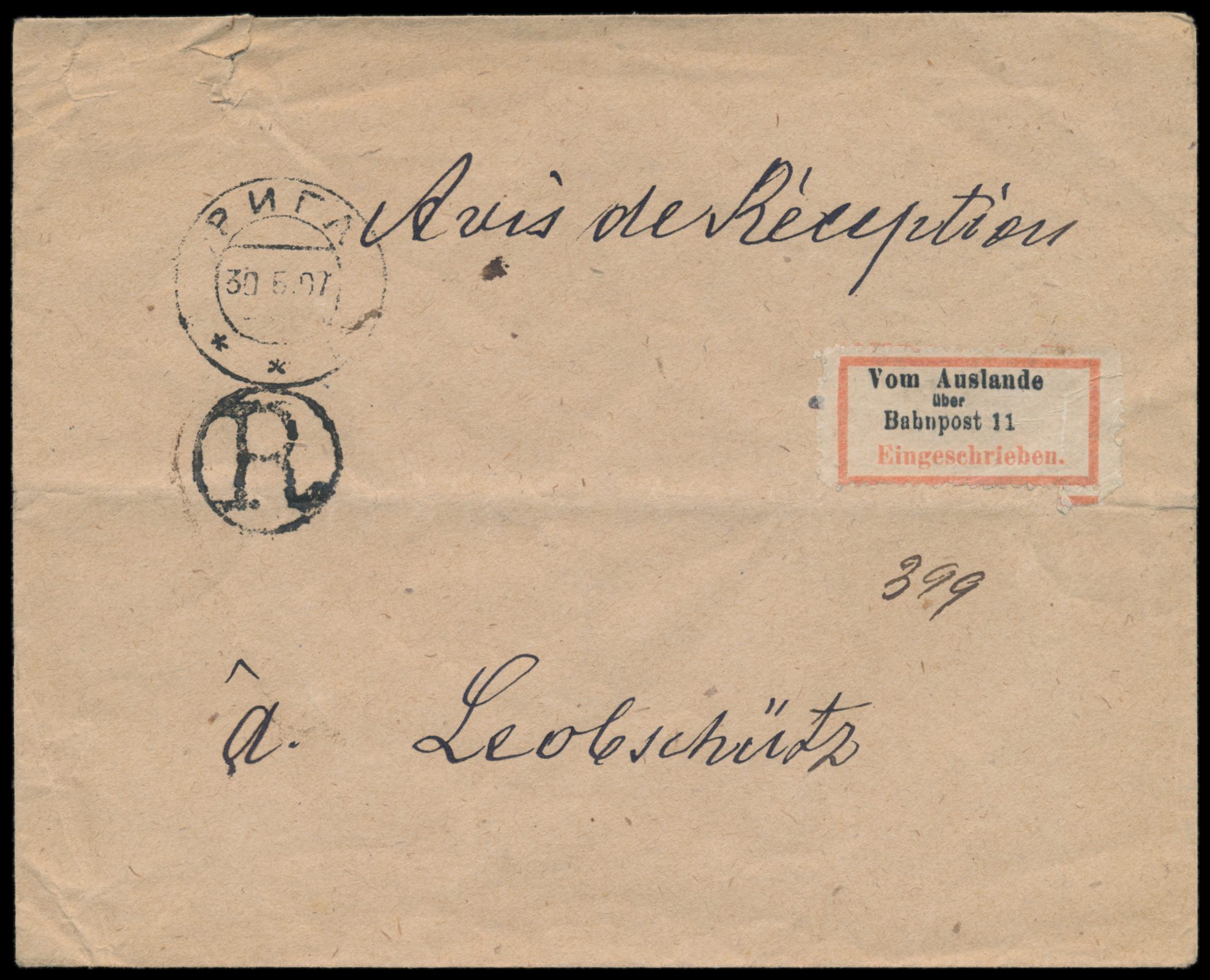 Stichwörter: Bahnpost, Einschreibbriefe, RPD Danzig und Königsberg