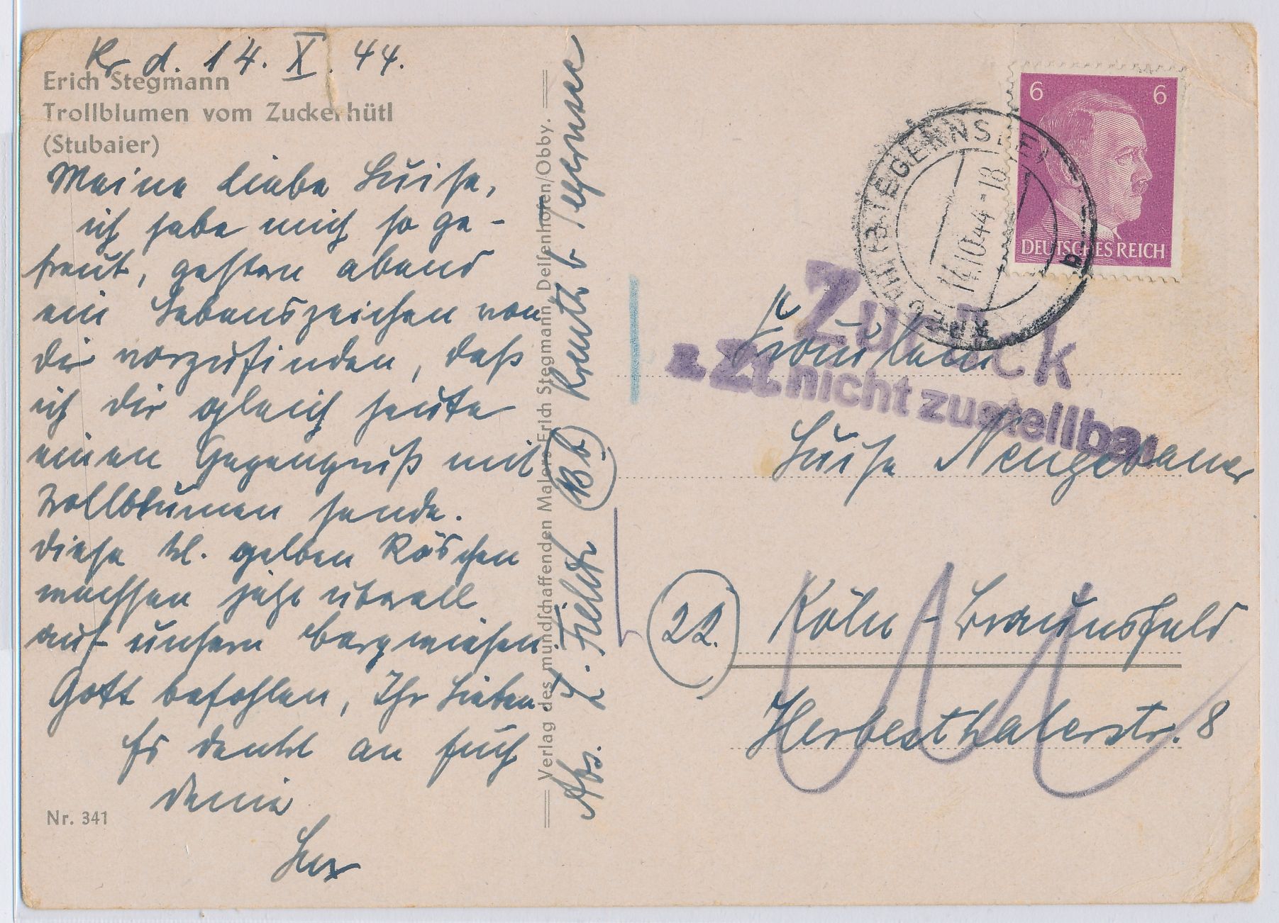 Stichwörter: Berlin bis 1945, Retour-Briefe
