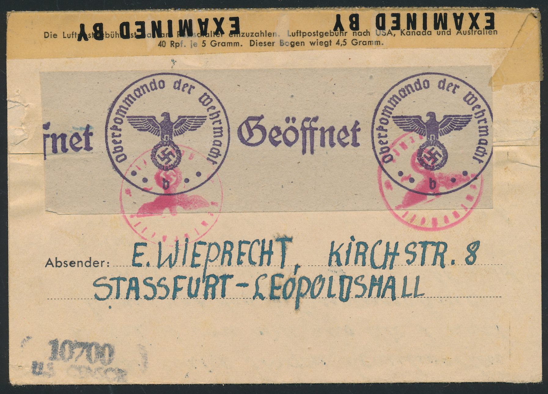 Stichwörter: Einschreibbriefe, Feldpost 2. Weltkrieg
