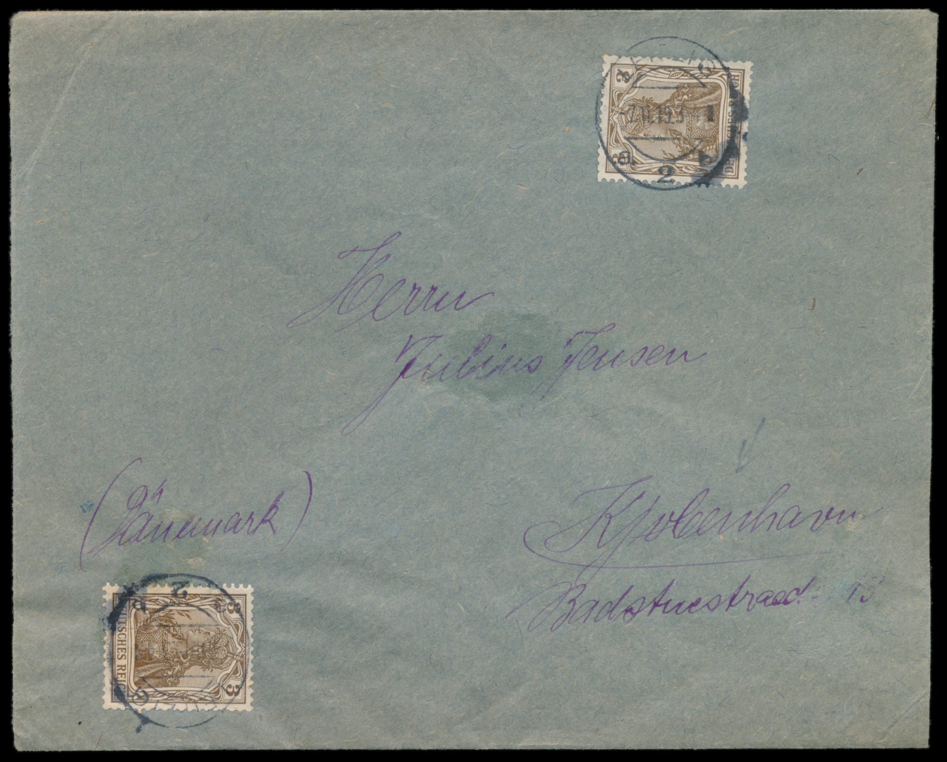 DAPAG-Frankier- und Stempelmaschine Leipzig a 2 b 7.11.19 mit 2 x 3 Pf. Germania rechts oben und links unten auf Drucksache nach Kopenhagen, Bedarf