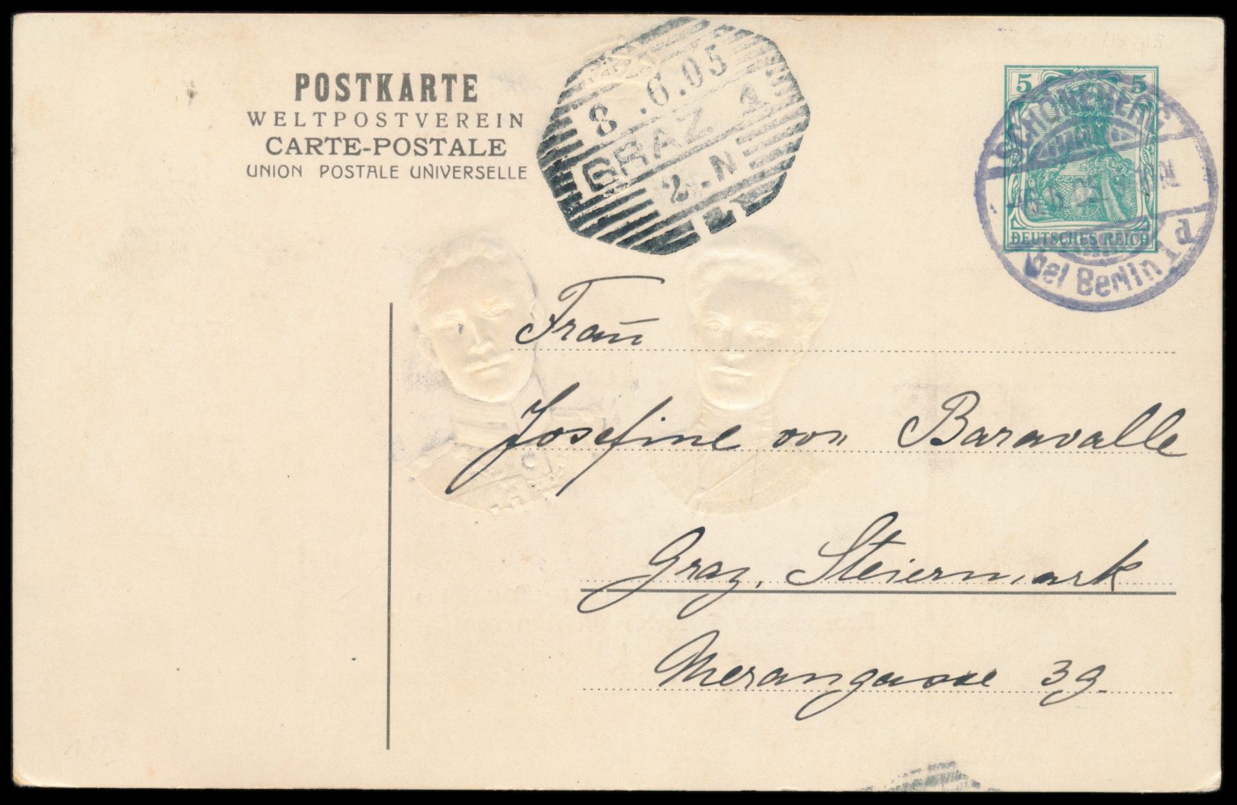 Privatganzsache 5 Pf., Vermählung Sr. Kgl. Hoheit des Kronprinzen Friedrich Wilhelm ..., Frech D 7, Stempel Schöneberg bei Berlin 6.6.05, nach Graz, Ankunftstempel 8.6.05, Bedarf