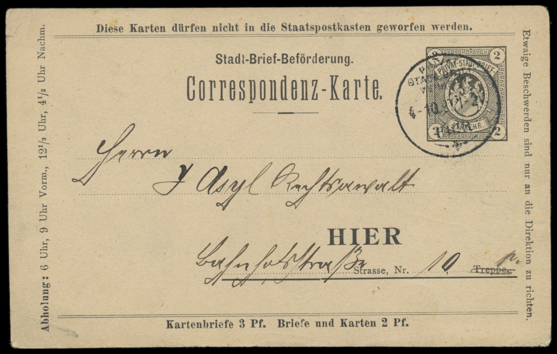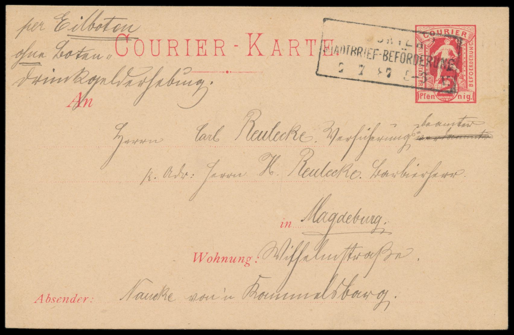Magdeburg, Courier: Ganzsache mit Wertstempel "Mercur über Weltkugel" 2 Pf., Müller P 4, Stempel 9.7.1887, Bedarf