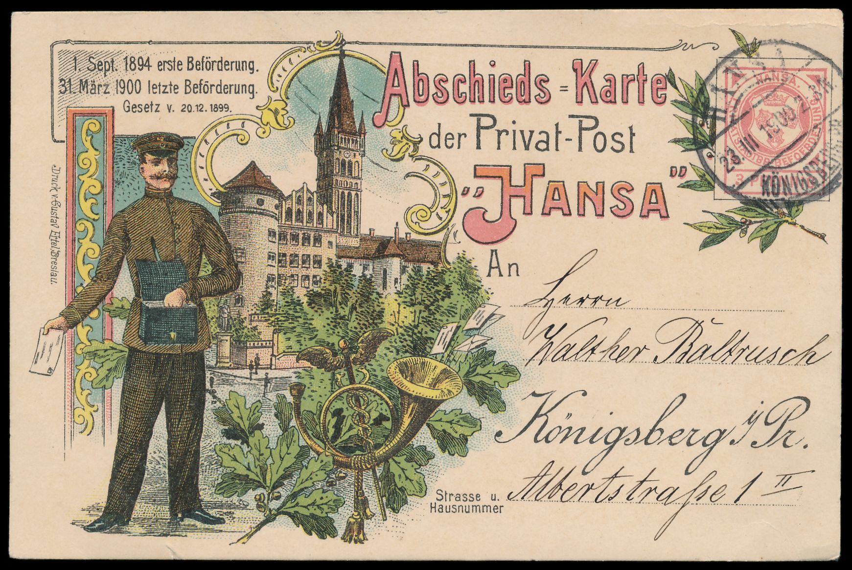 Königsberg, Hansa-Abschiedskarte 3 Pf., Müller P 11, Stempel Hansa / Königsberg i Pr 23.3.1900