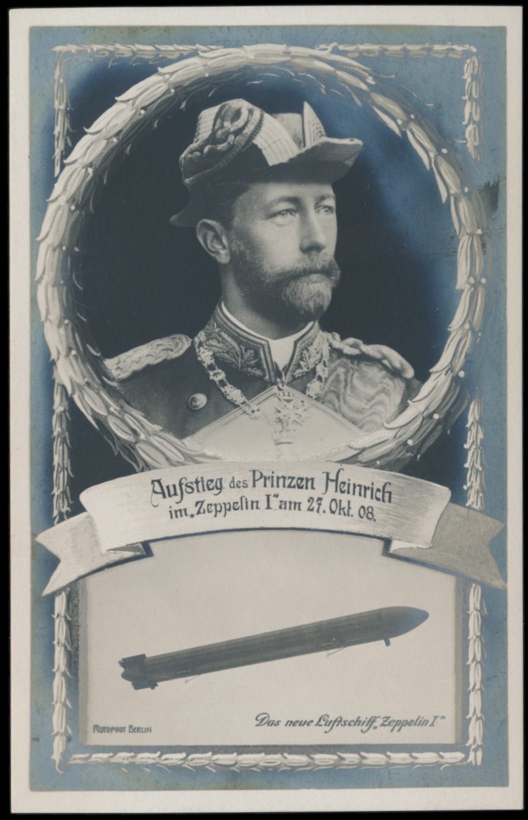LZ. 3, Ansichtskarte zum Aufstieg des Prinzen Heinrich im Zeppelin I am 27.10.08, Kopfbild und Bild Zeppelin, ungebraucht