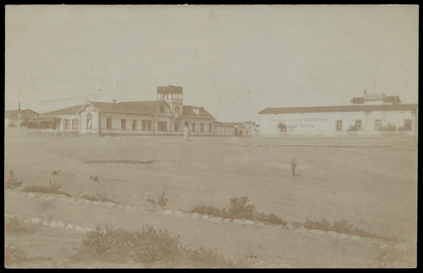 Foto-Ansichtskarte (Privataufnahme), laut Kartentext "Gebäude der Woermann-Linie und der Store der D. Colonial Gesellschaft", Frankatur 10 Pf. (Mängel), Stempel Swakopmund 1.9.06, nach Naumburg, Bedarf