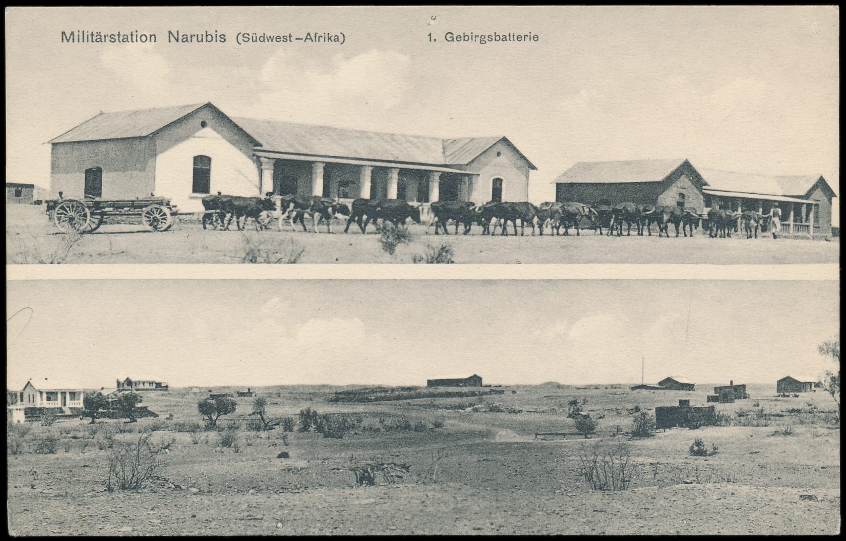 Zweibild-Ansichtskarte Militärstation Narubis, 1. Gebirgsbatterie, ohne Verlagsangabe, ungebraucht, ca. 1908