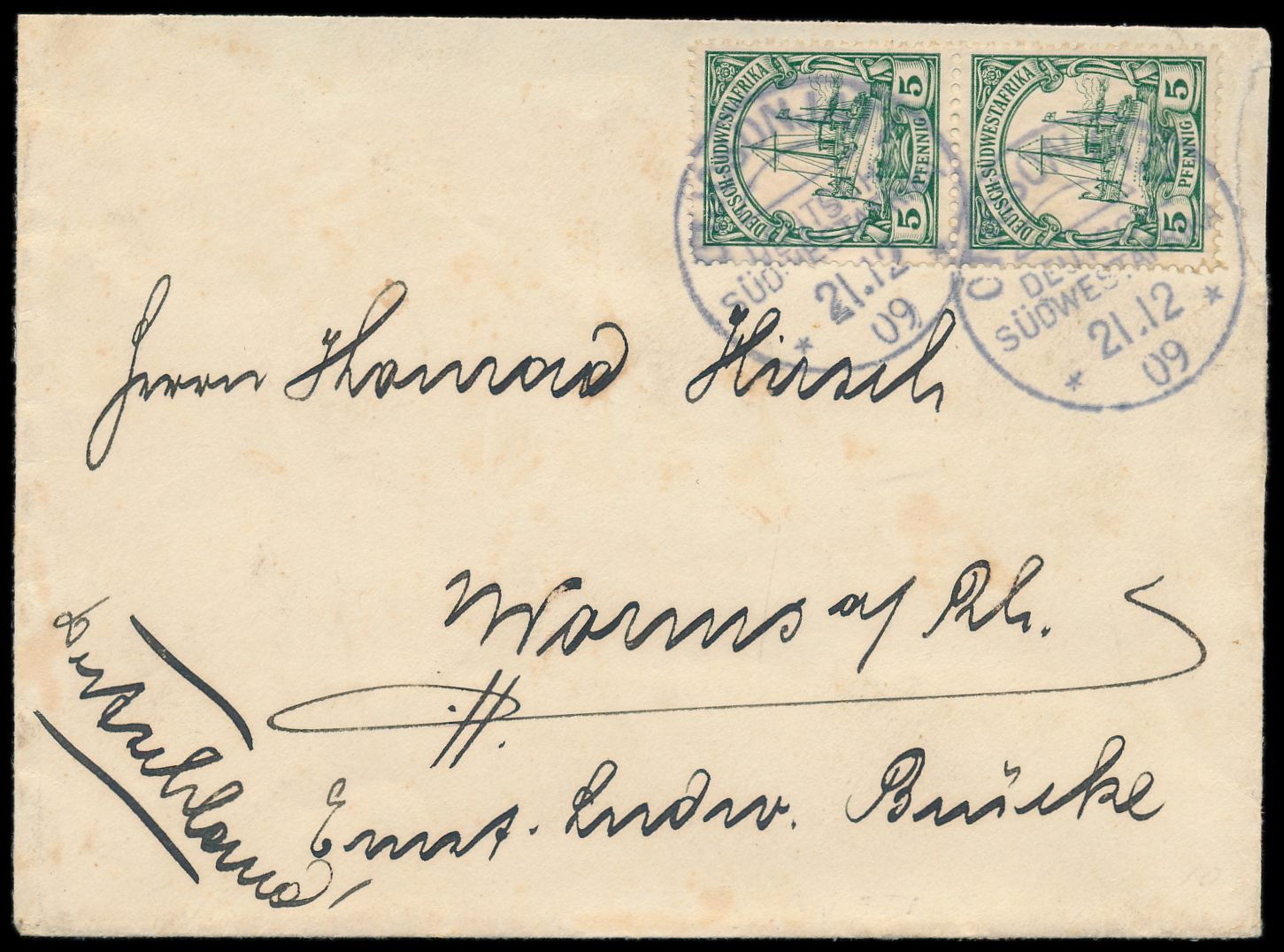 2 x Stempel Otjosonjati 21.12.09 auf Brief mit 2 x 5 Pf. nach Worms, rückseitig fehlt ein kleiner Teil der Briefklappe, Bedarf