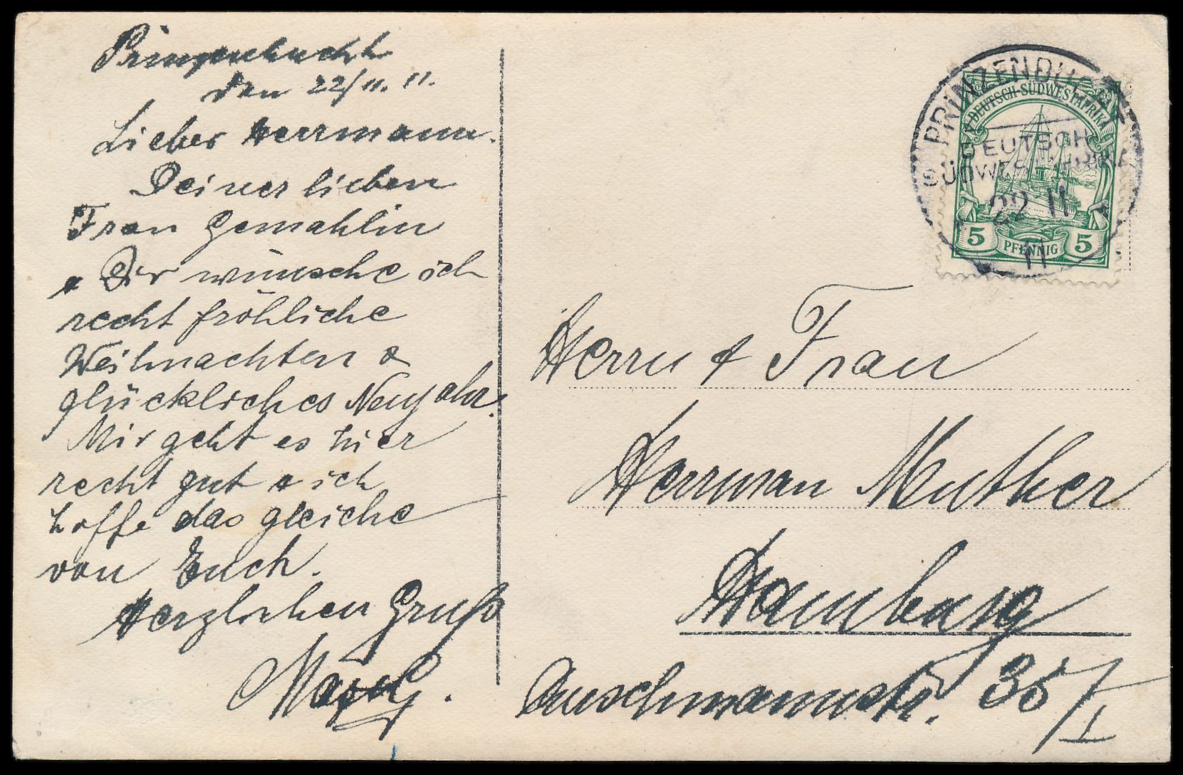 Stempel Prinzenbucht 22.11.11 auf Foto-Ansichtskarte Condensator - Prinzenbucht", seltene Privataufnahme, Frankatur 5 Pf., nach Hamburg, Bedarf