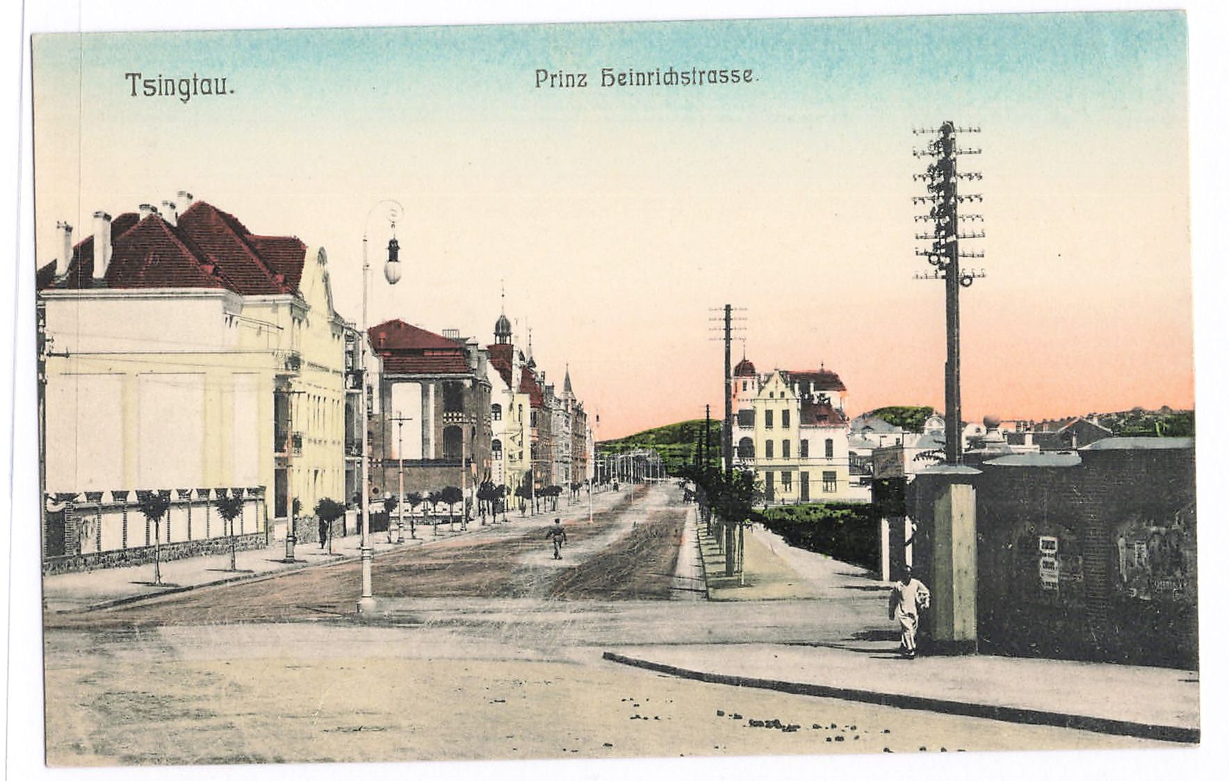 kolorierte Ansichtskarte Tsingtau - Prinz Heinrichstrasse, Verlag Robert Claus, Dresden, ungebraucht, ca. 1910