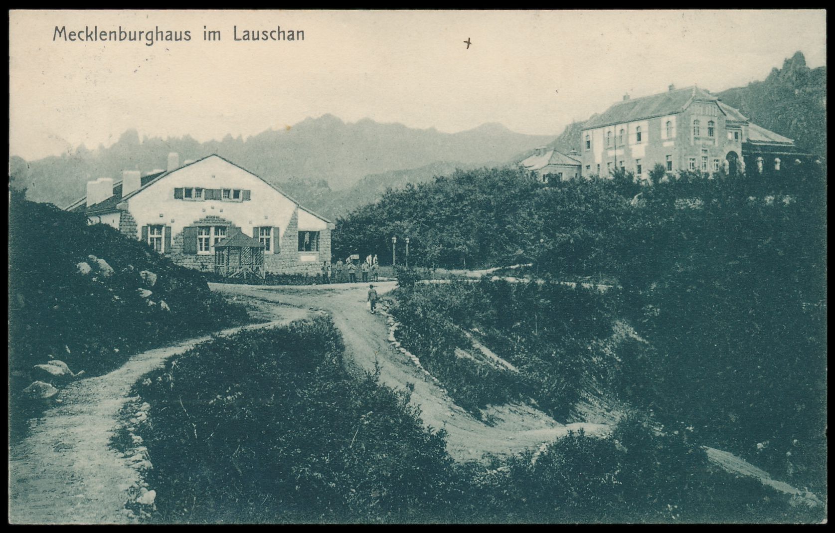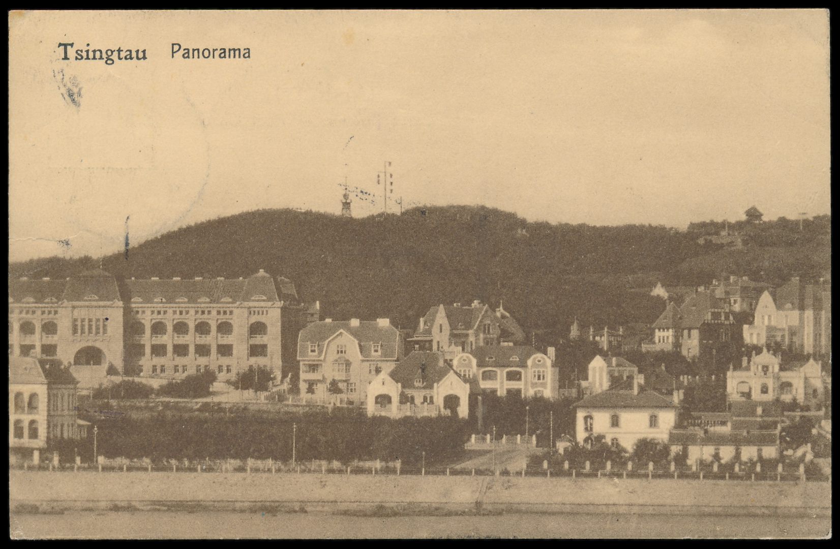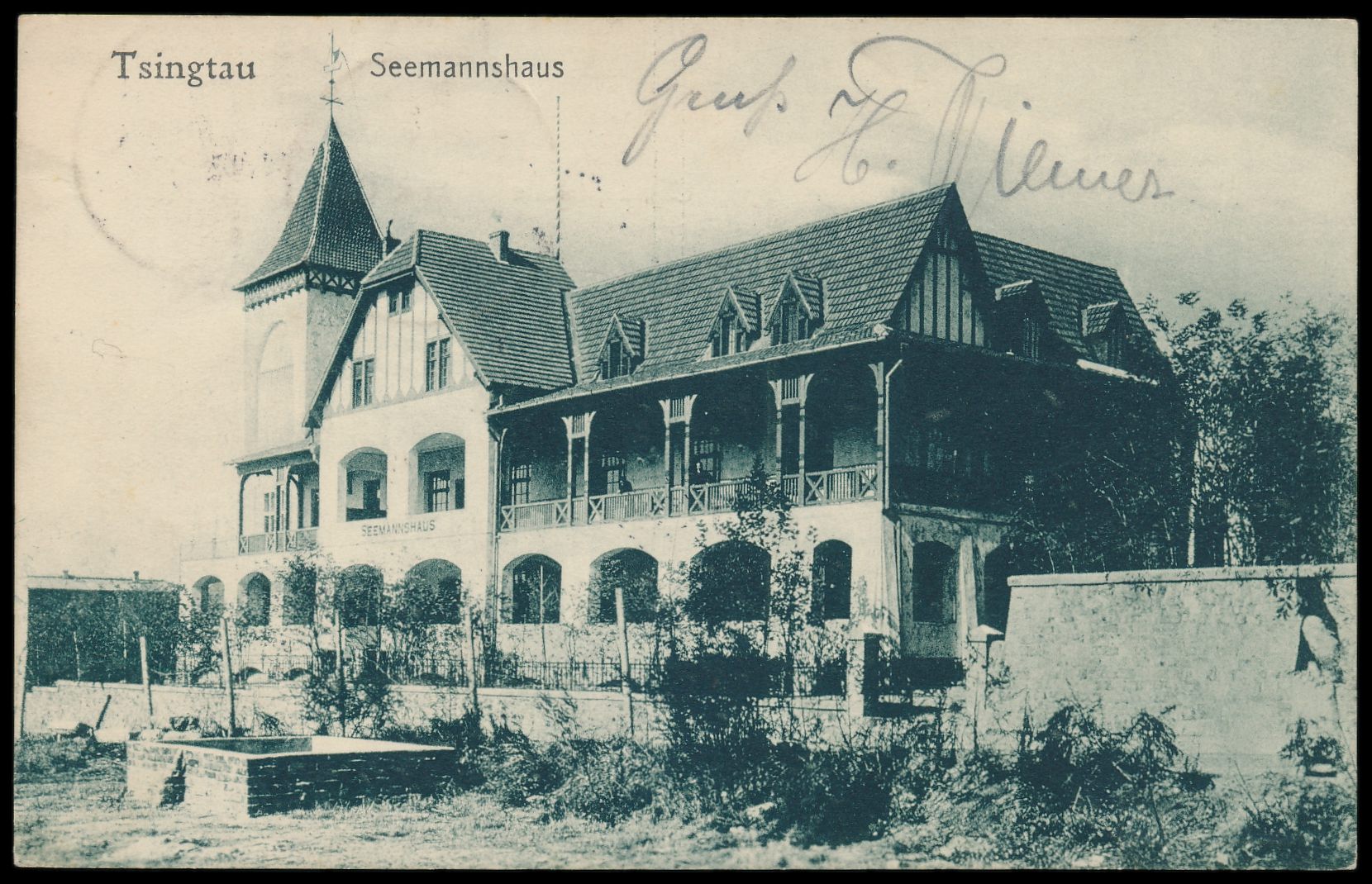 Ansichtskarte Mecklenburghaus im Lauschan, Verlag Adolf Haupt, Tsingtau, Frankatur 2 C., Gitterstempel Tsingtau 23.8.12, nach Auerbach, Bedarf