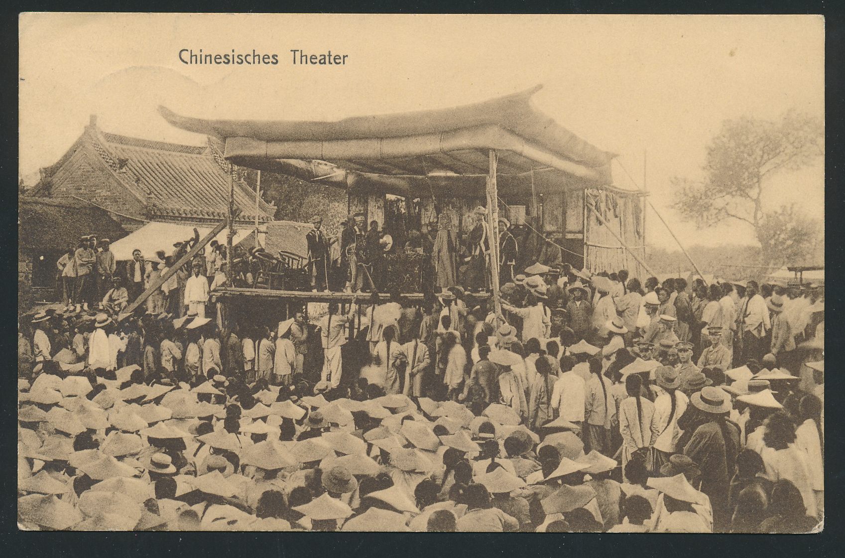 Ansichtskarte Chinesisches Theater, Verlag Adolf Haupt, Tsingtau, Frankatur 2 C., Gitterstempel Tsingtau c 23.3.12, nach Hamburg, Bedarf