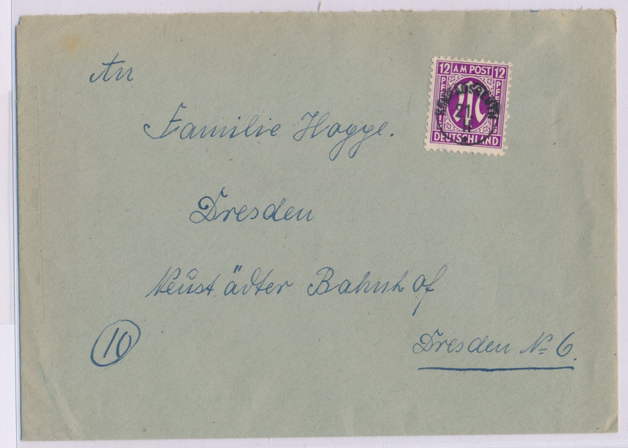 kleiner Not-K1 Konradsreuth 21. II. (1946) auf Brief mit 12 Pf. AM-Post nach Dresden, Bedarf