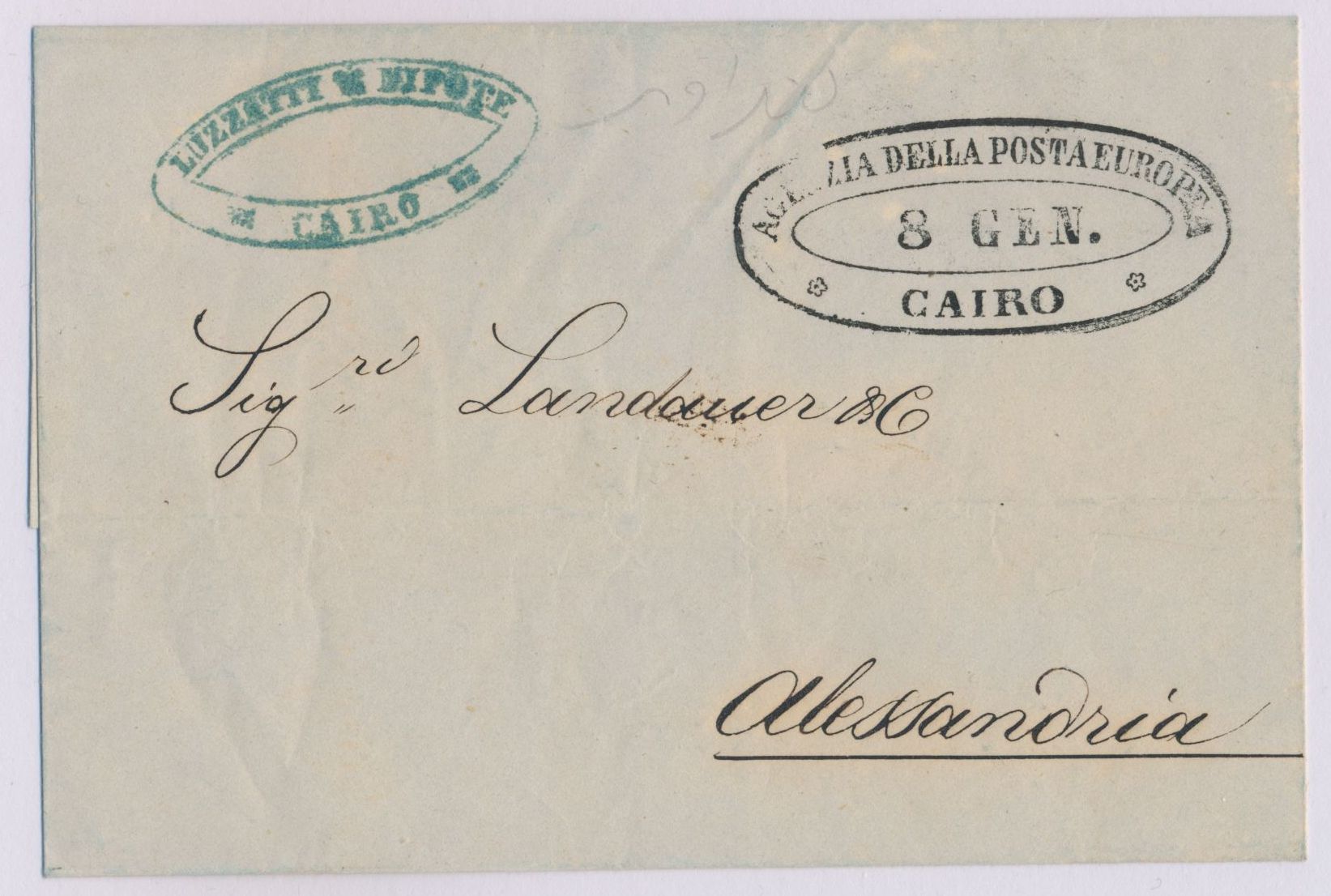 Ovalstempel Agenzia della Posta Europea Cairo / 8. Gen. (1852) auf Faltbriefhülle nach Alexandria
