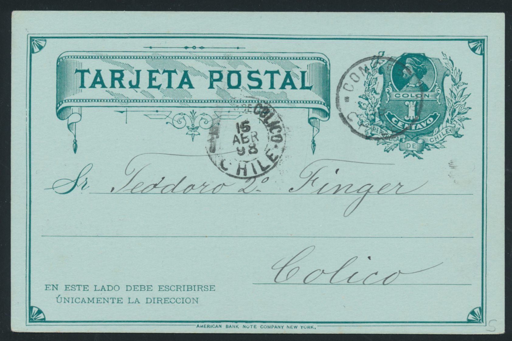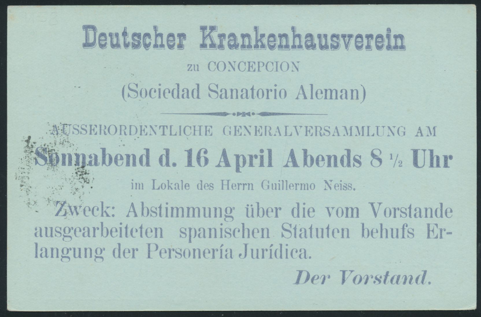 Orts- Ganzsache 1 ct. grün, Stempel Concepcion 1898, Zudruck Deutscher Krankenhausverein Generalversammlung, Bedarf