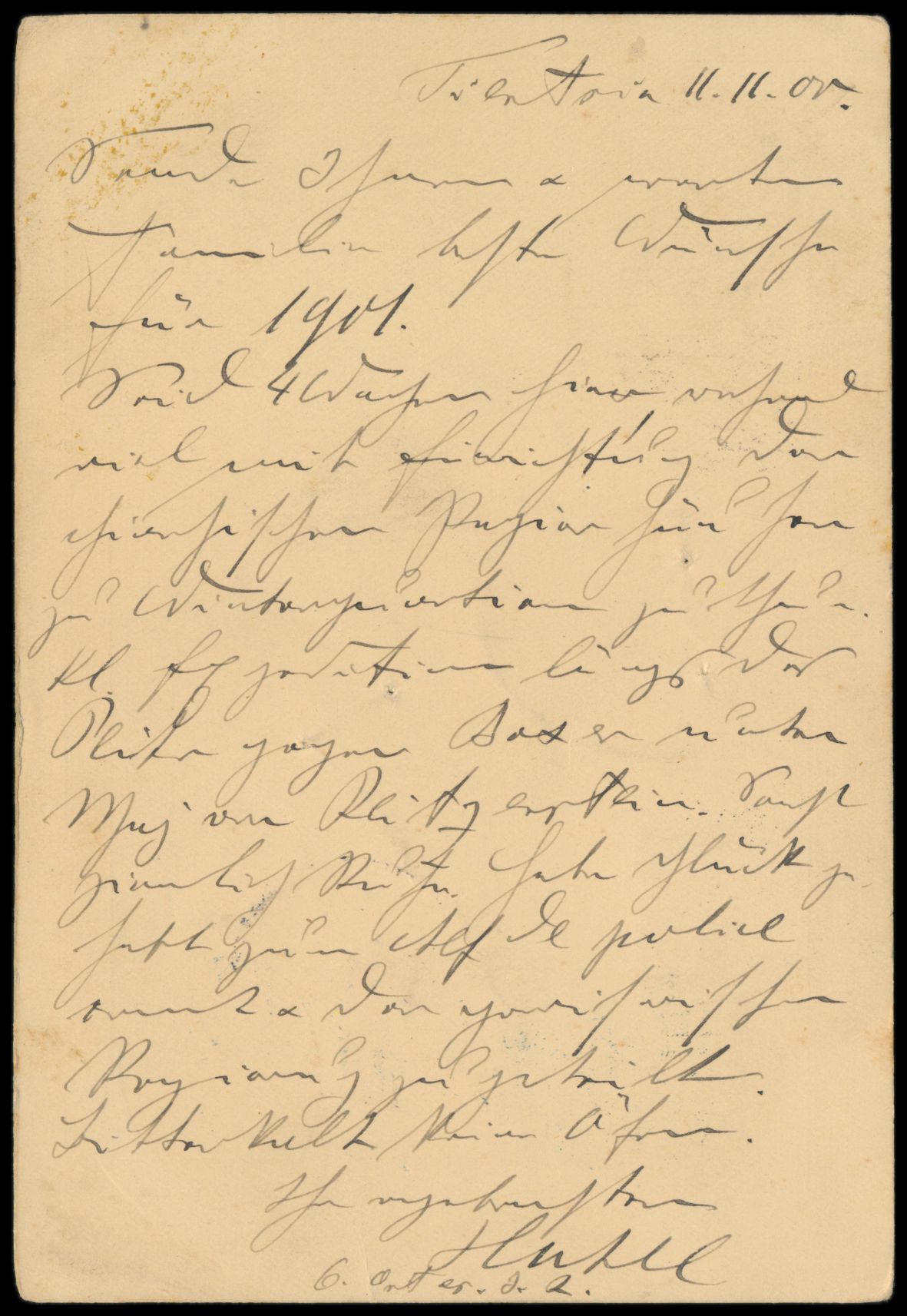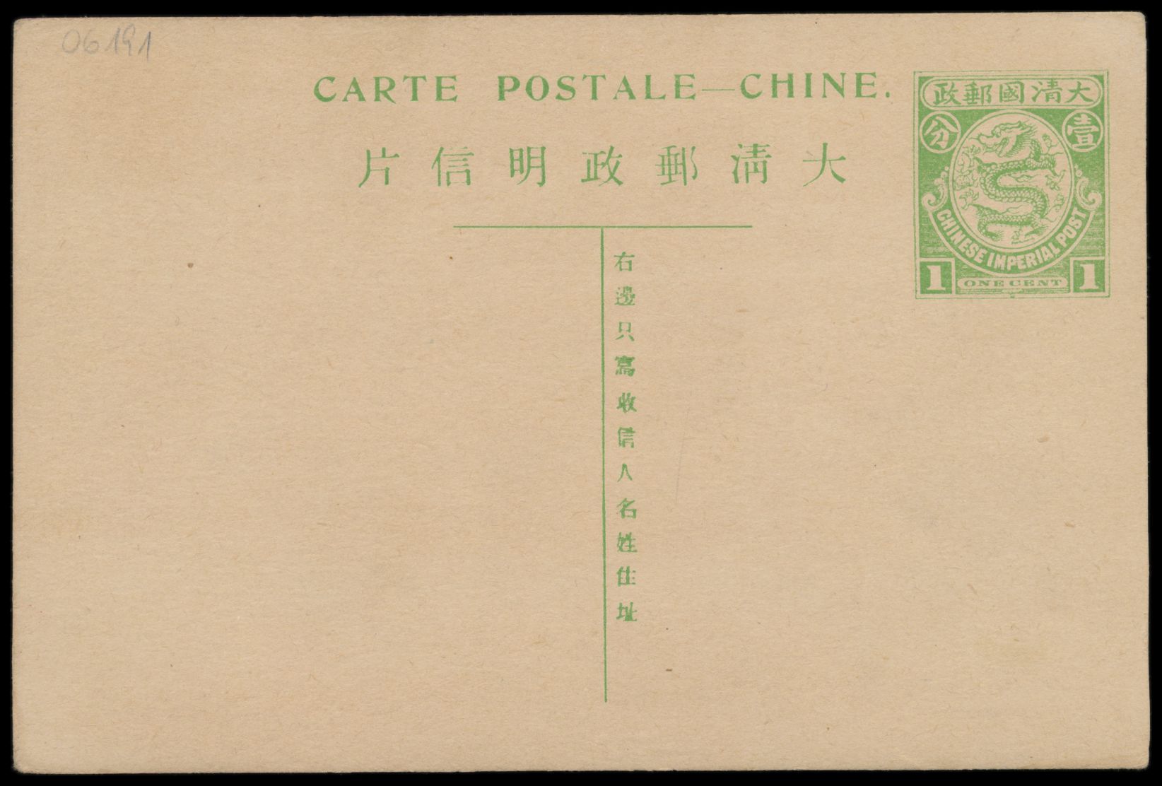 1908, Ganzsache C.I.P. 1 C. grün (Han Nr. 6) mit rückseitig mehrfarbiger Tuschezeichnung, ungebraucht
