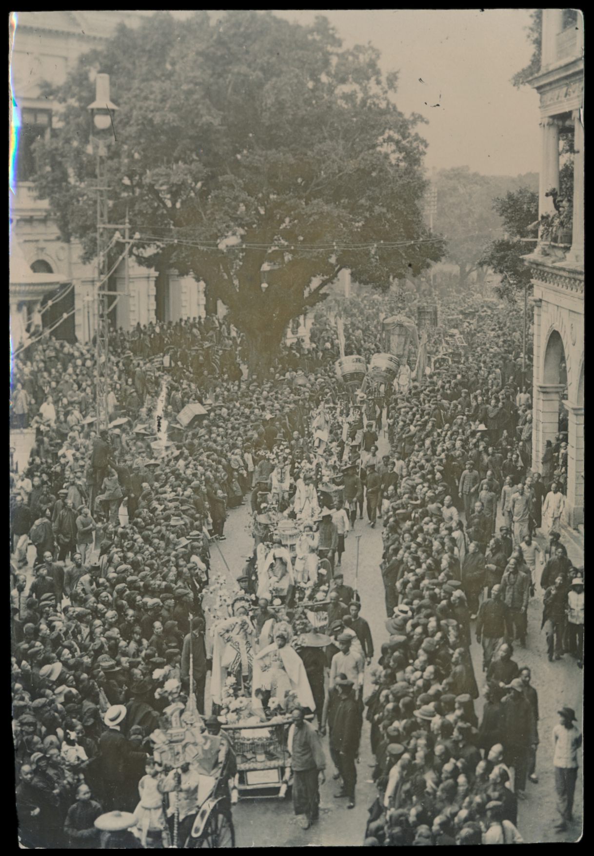 Original-Fotografie einer Hochzeitsprozession hochgestellter chinesischer Persönlichkeiten, ca. 1910, Format 14,5 c 10 cm