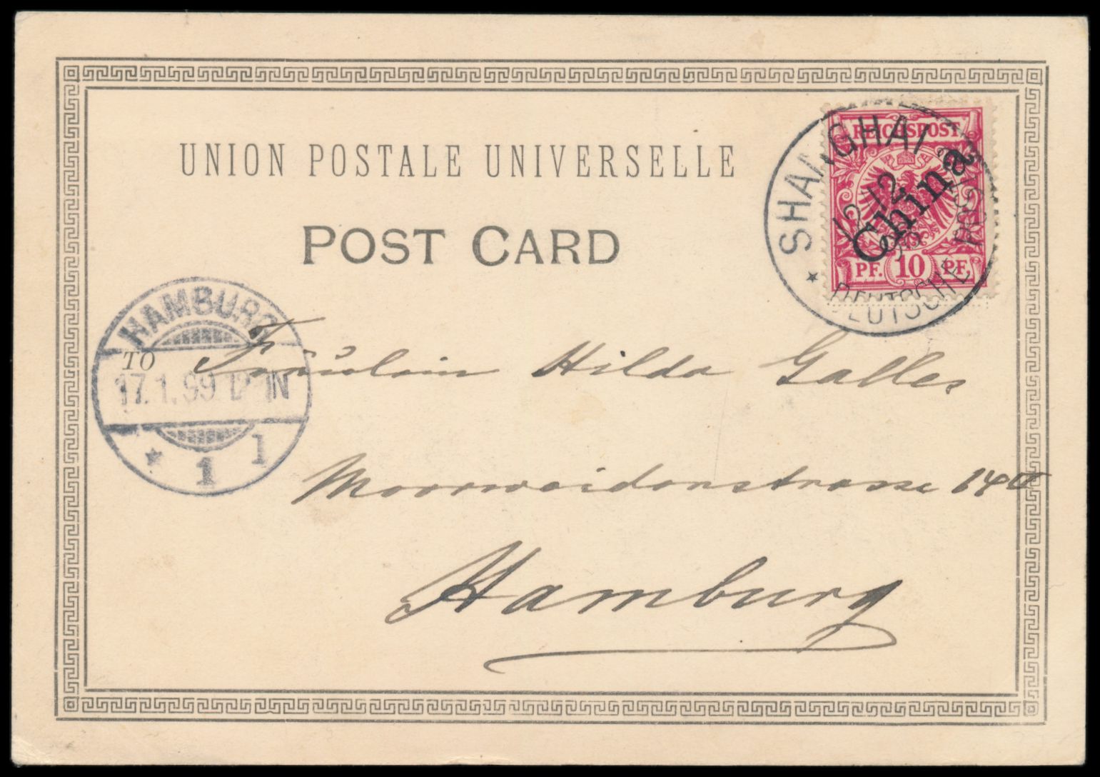 Ansichtskarte (Kleinformat) St. John´s Cathedral , Deutsche Post in China 10 Pf., Stempel Shanghai / Deutsche Post 12.12.98, nach Deutschland, Ankunftstempel Hamburg 17.1.99, Bedarf