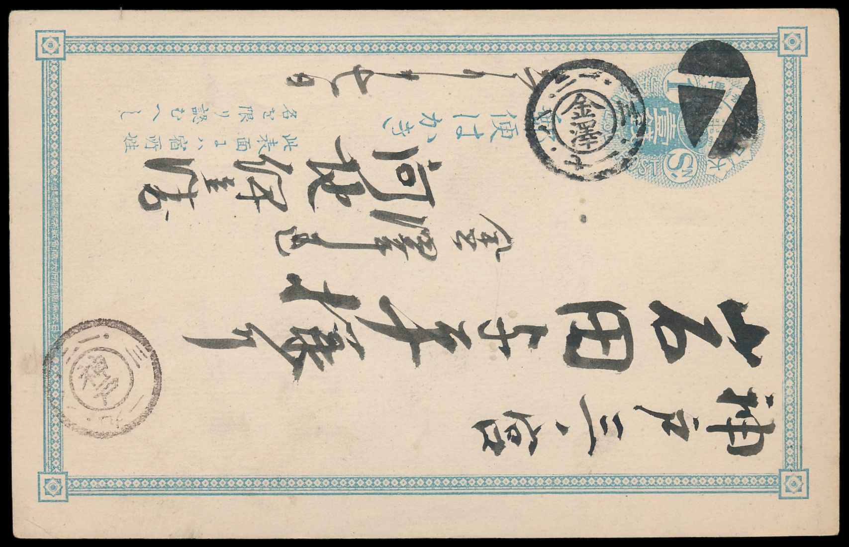 großer Botastempel Kanazawa auf Ganzsache 1 Sen