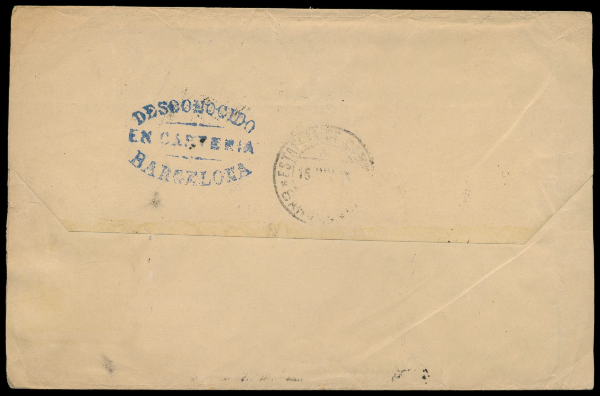 Ganzsachen-Streifband 1 C. mit Stempel Buenos Aires 21.5.89 nach Spanien, T.-Stempel, Ankunftstempel Barcelona 15.6.89, rückseitig Stempel "Desconocido en Carteria Barcelona", vorderseitig Aufkleber "Desconocido / Inconnu" und Stempel "Espagne / Rebut / Postes"
