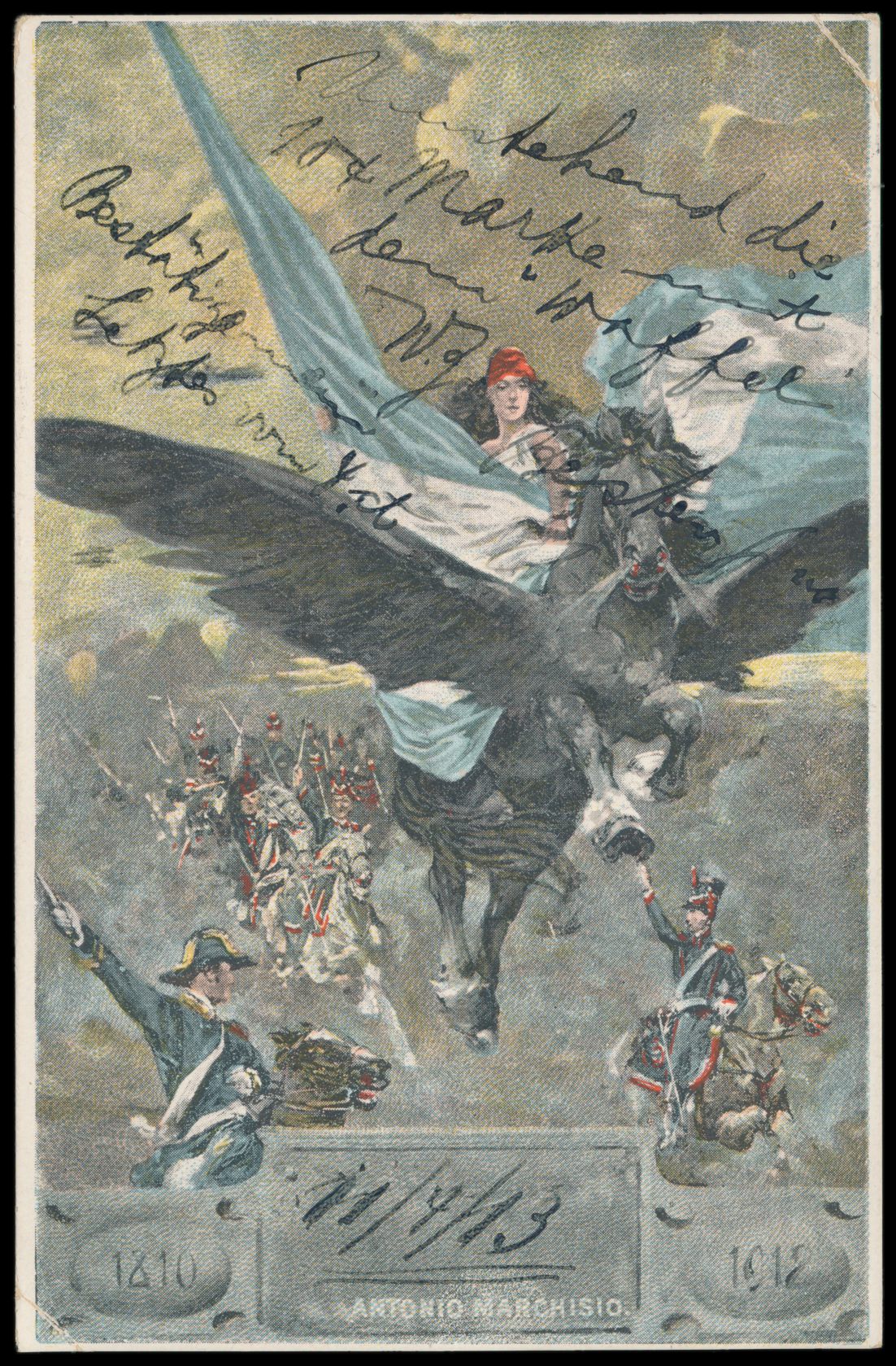Sonderkarte "Pro Flotilla Aero-Militar Argentina" mit entsprechender Spendenmarke 5 C. "Pro Aviacion Militar 1912" und Freimarke 10 C., beide mit Stempel Buenos Aires 11.4.13, nach Berlin, Bedarf