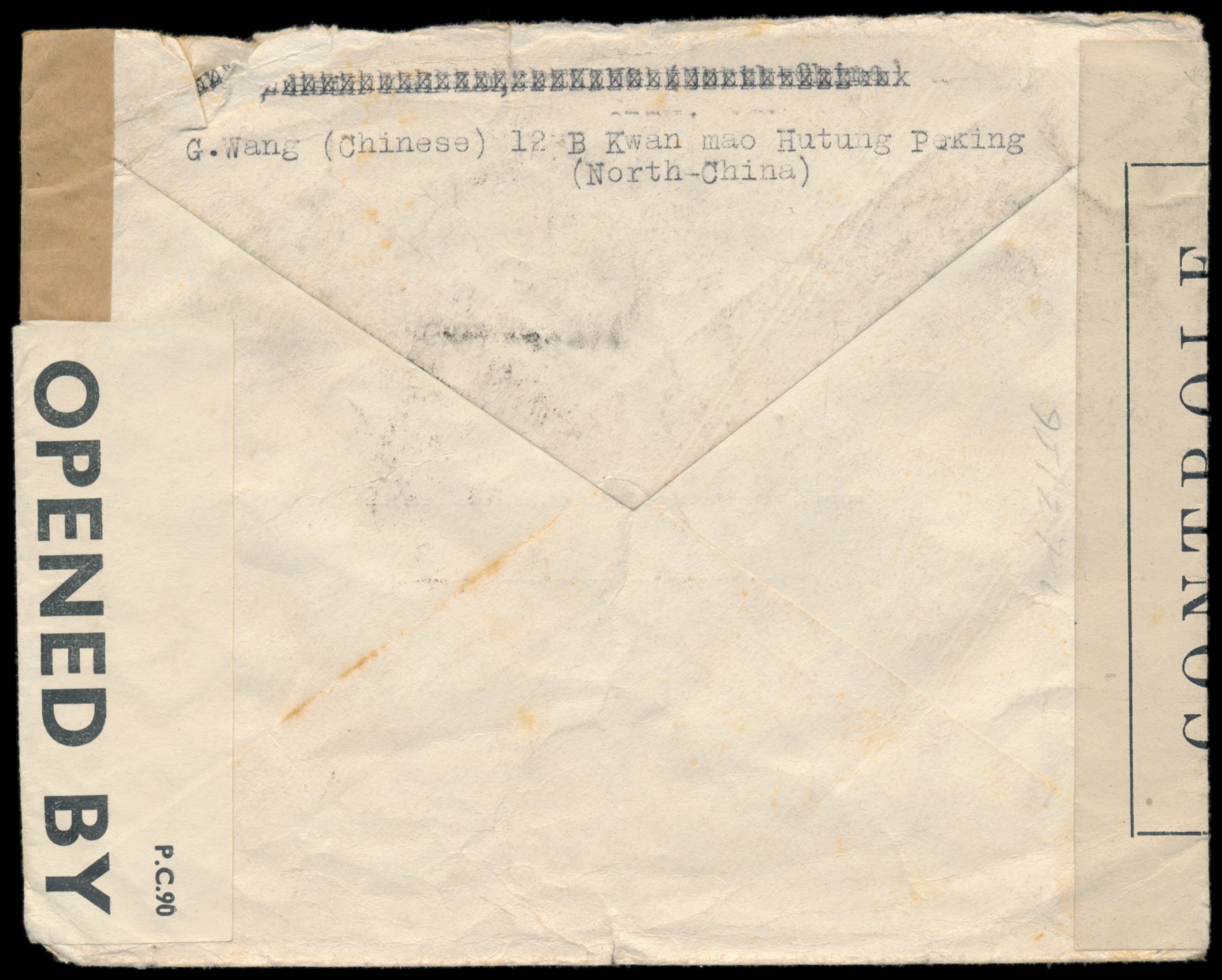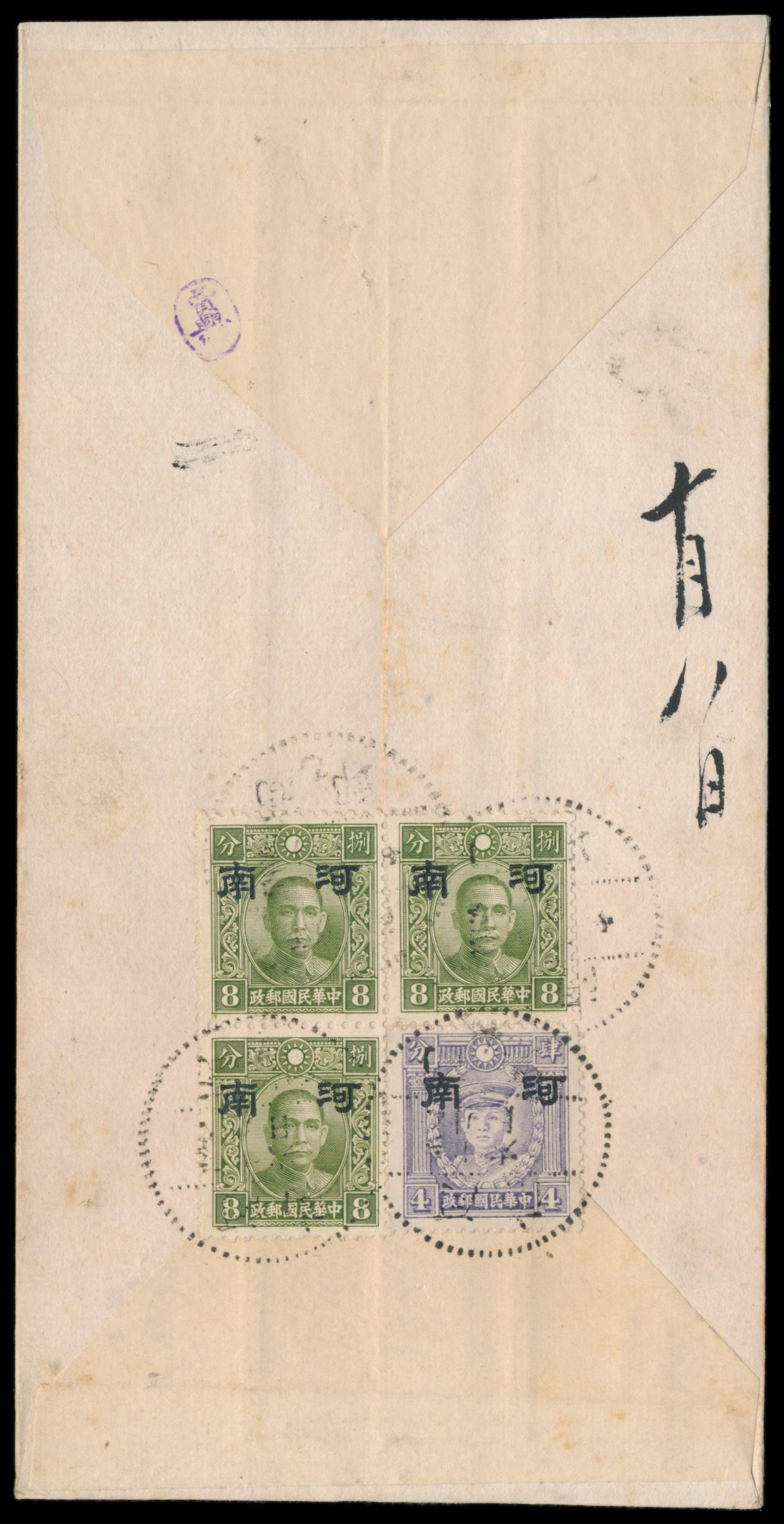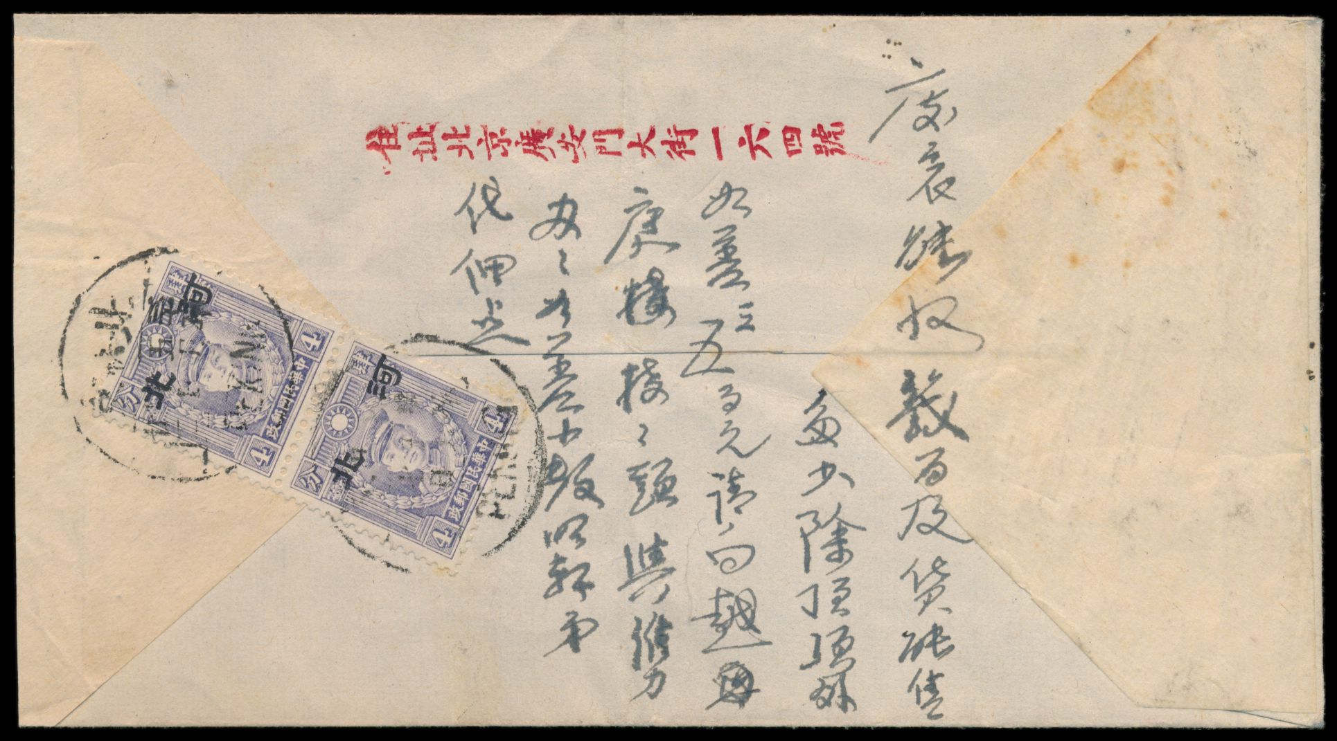 Japanische Besetzung, Nordchina, Provinz Hopeh: 2 x Märtyrer 4 C. rückseitig auf chinesischem Briefumschlag, Stempel Peking