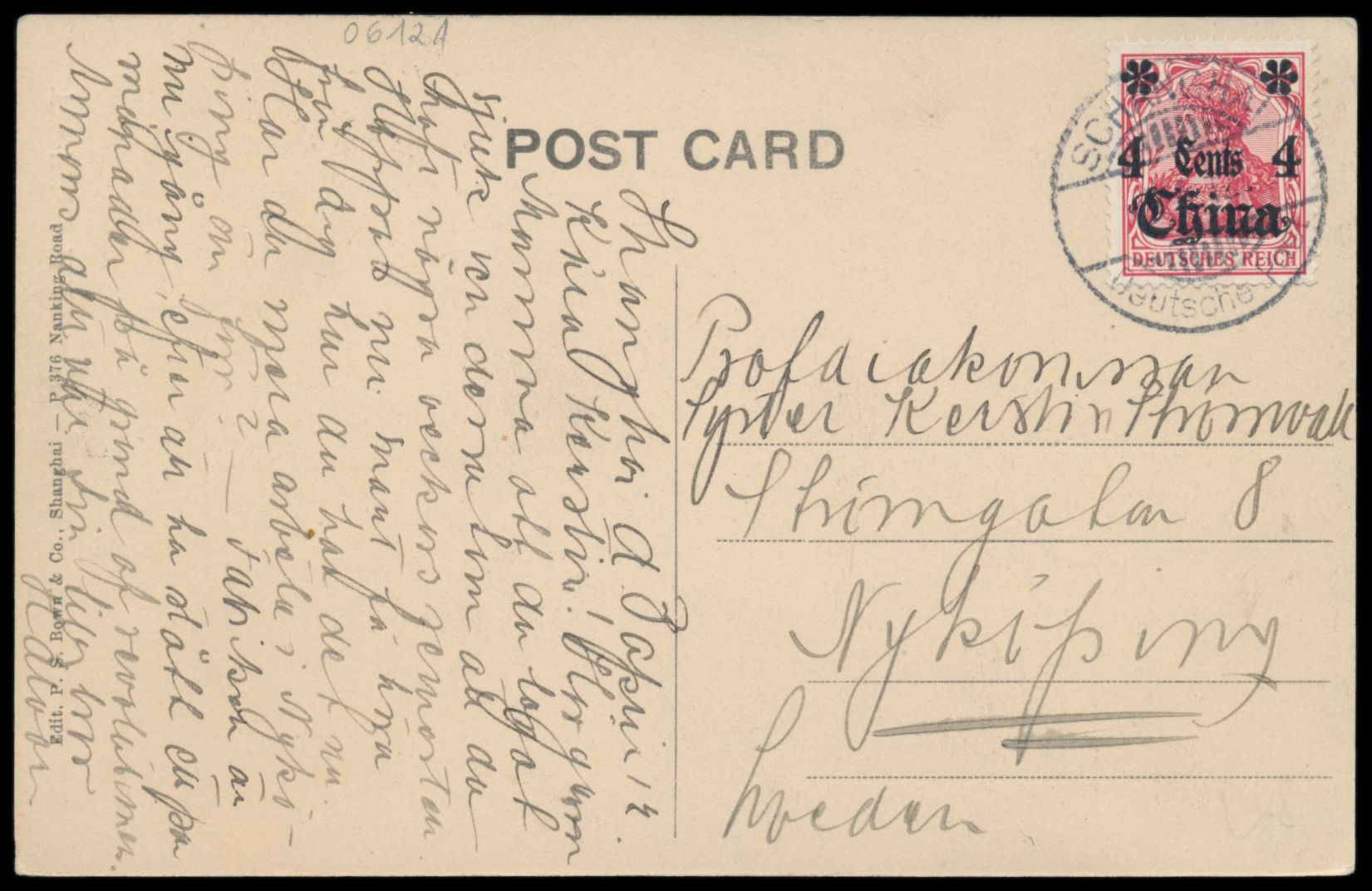 Ansichtskarte Shanghai - The Palace Hotel, Frankatur Deutsche Post 4 C., Stempel Schanghai 3.4.12, nach Schweden, Bedarf